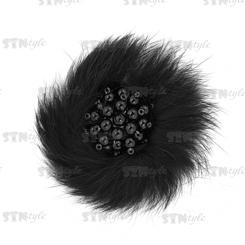 Аппликация с элементами из бисера, цвет черный+черные бусины, диаметр 70 мм