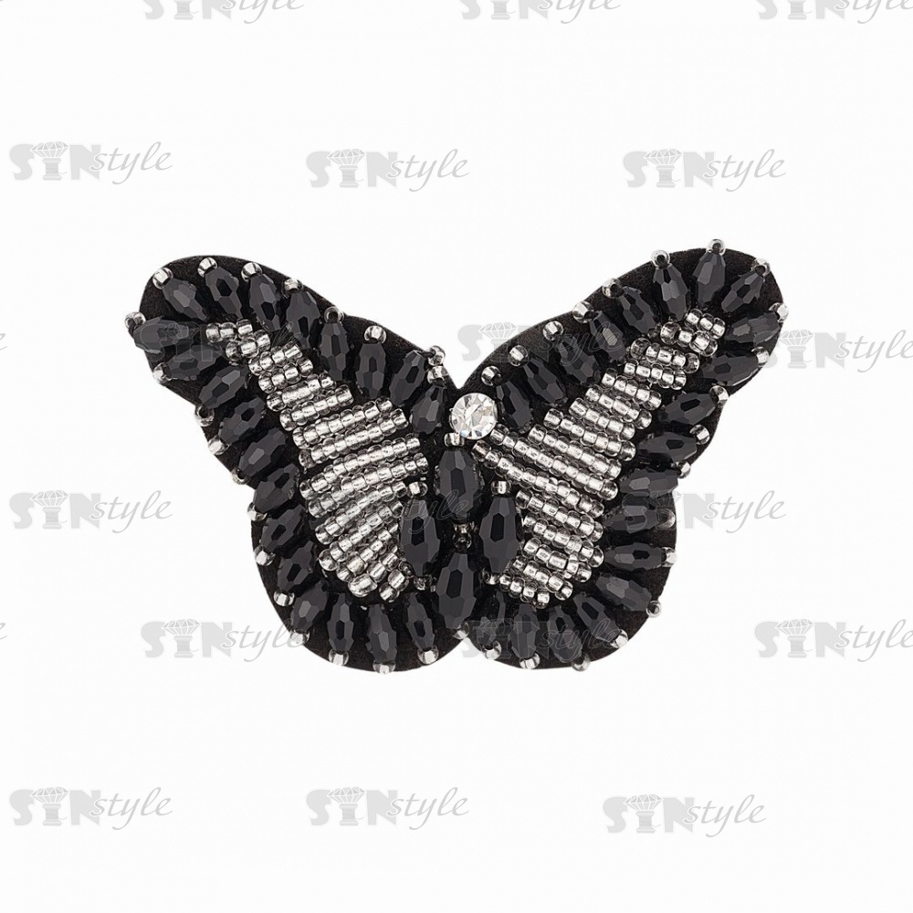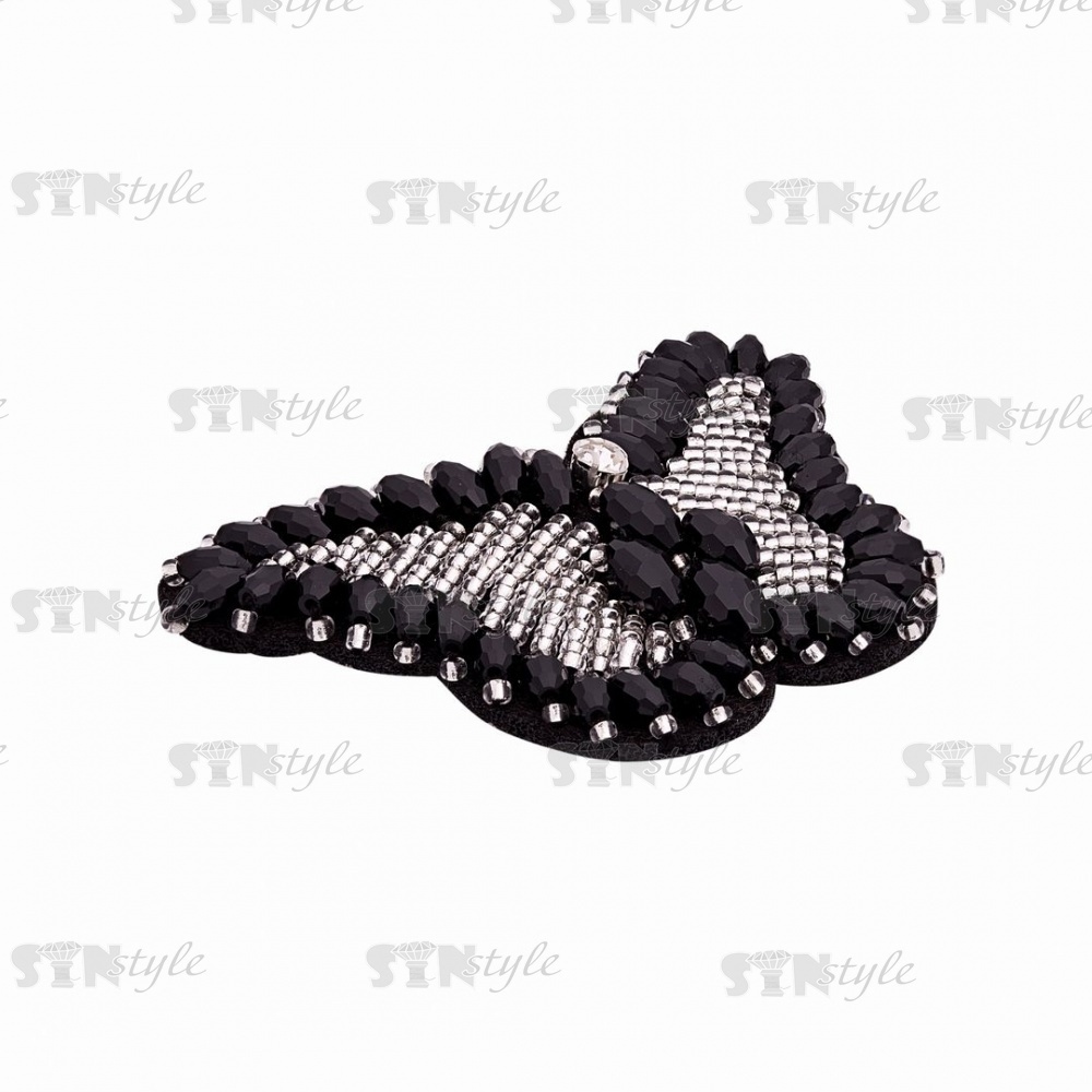 Аппликация с элементами из бисера на фетровой основе, цвет черный, размер 70х45 мм