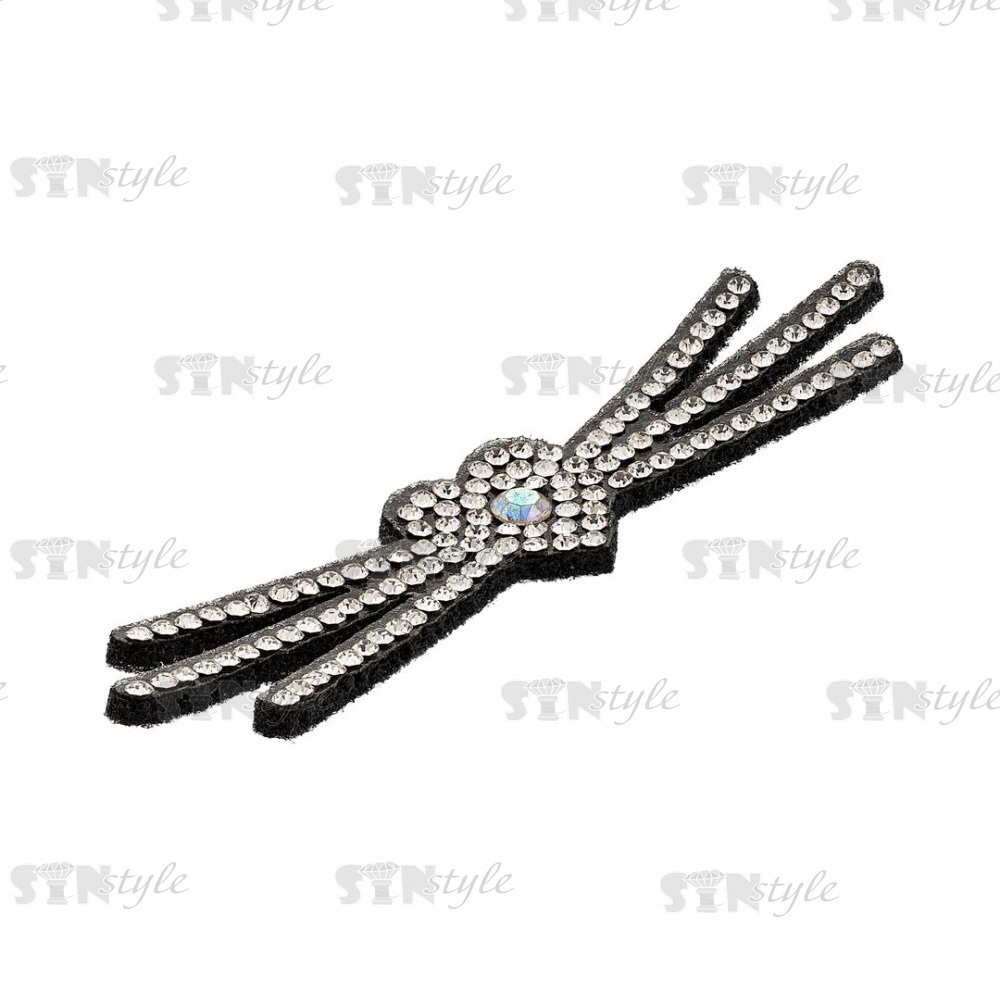 Аппликация "Усики" из страз, на фетровой основе, размер 85 мм х16 мм, цвет черный+белые и радужные стразы