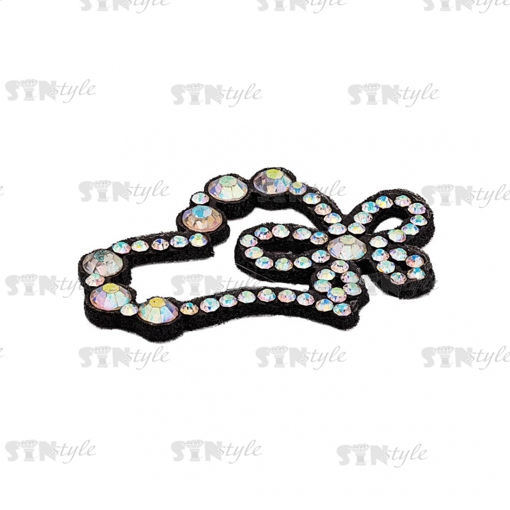 Аппликация "Сердечко" из страз, на фетровой основе, размер 40 мм х 28 мм, цвет черный + радужные стразы
