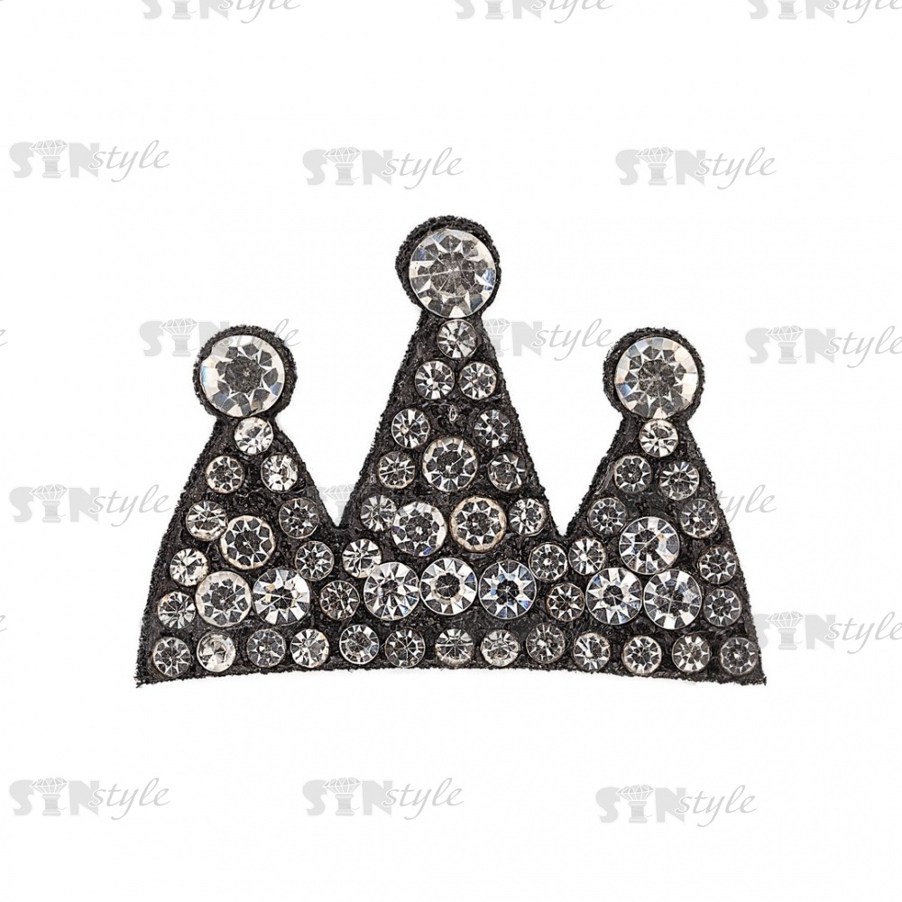 Аппликация "Корона" из страз на фетровой основе, размер 40 мм х 28 мм, цвет черный + белые стразы