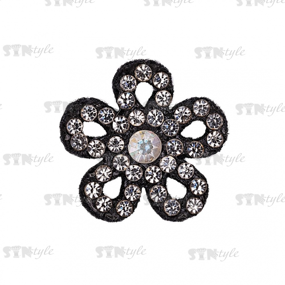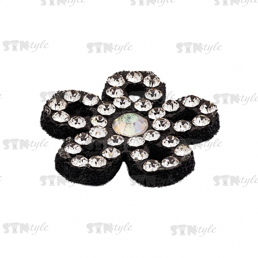 Аппликация "Цветочек" из страз, на фетровой основе, размер 22 мм, цвет черный+белые и радужные стразы
