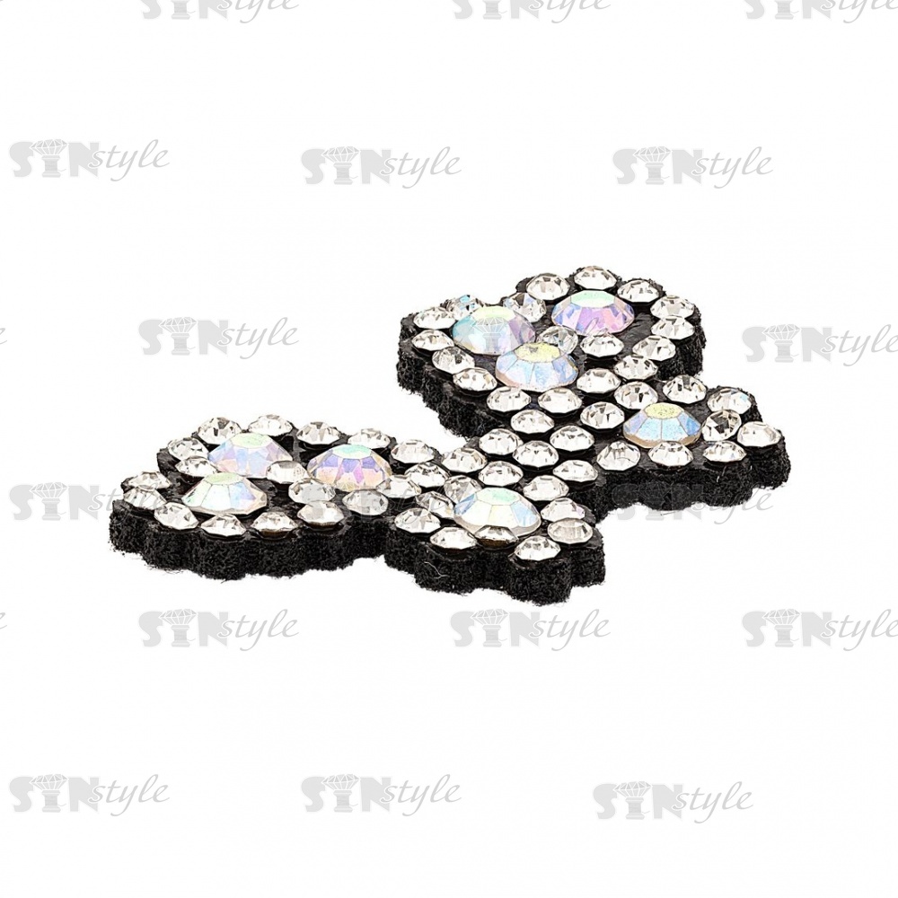 Аппликация "Бабочка" из страз на фетровой основе, размер 35 мм х 23 мм, цвет черный + радужные стразы