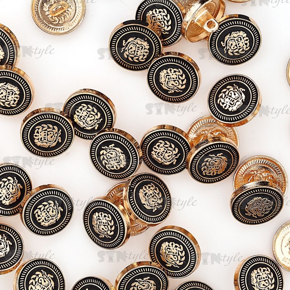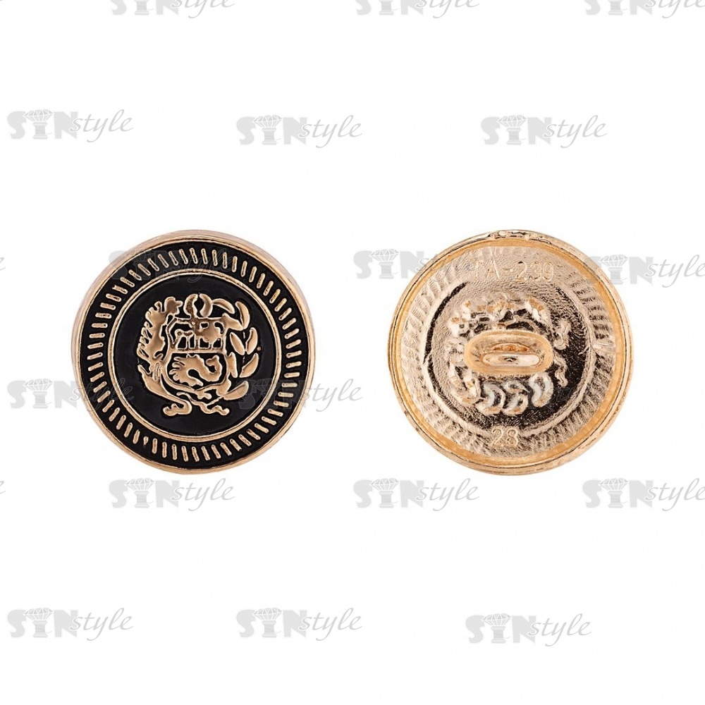 Пуговица металлическая на ножке, размер 28L, цвет золото/черный