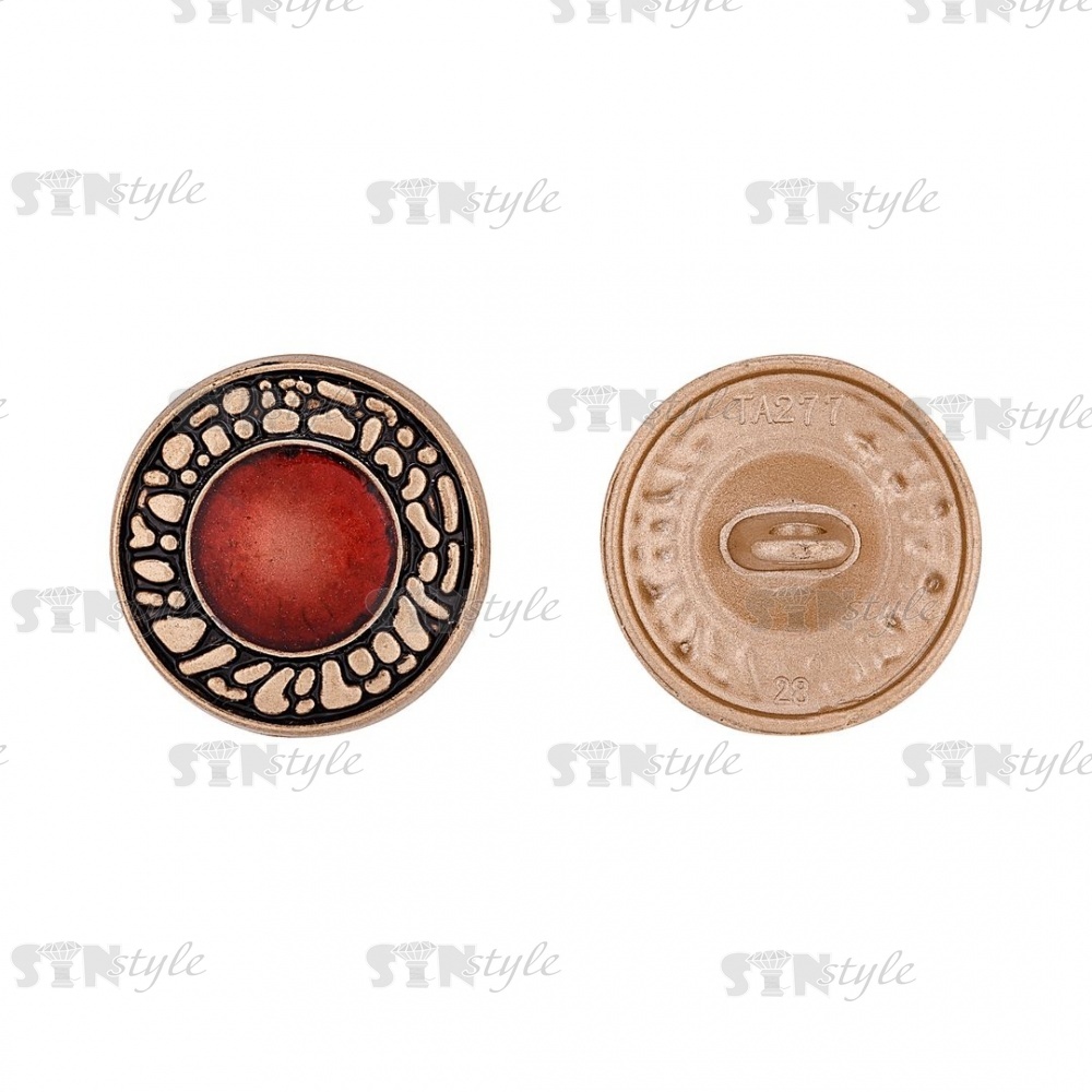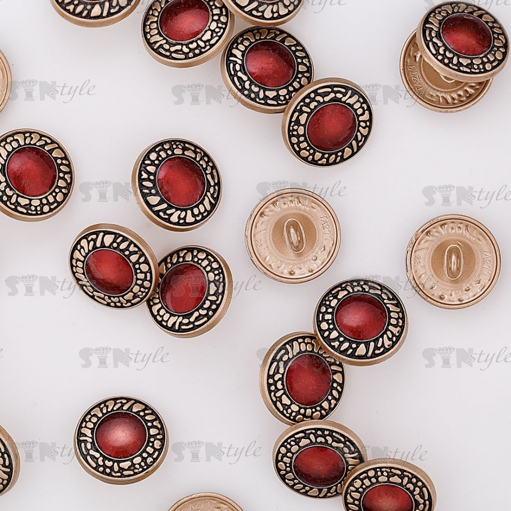 Пуговица металлическая на ножке, золотая с бордовым, 32L