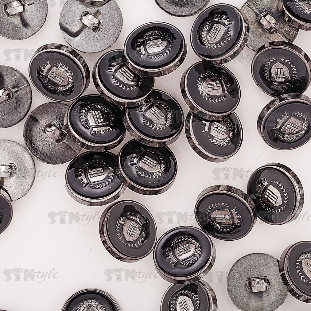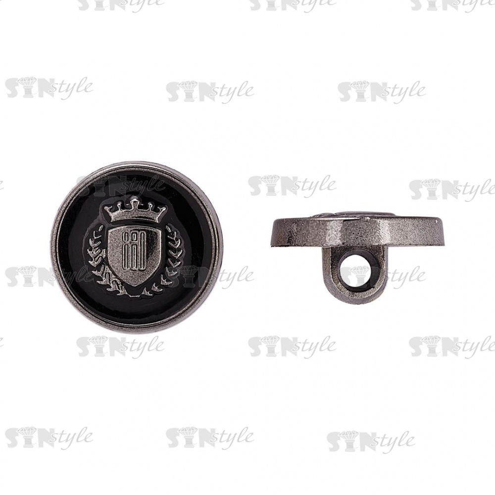 Пуговица пластиковая на ножке, размер 28L, цвет никель+черный