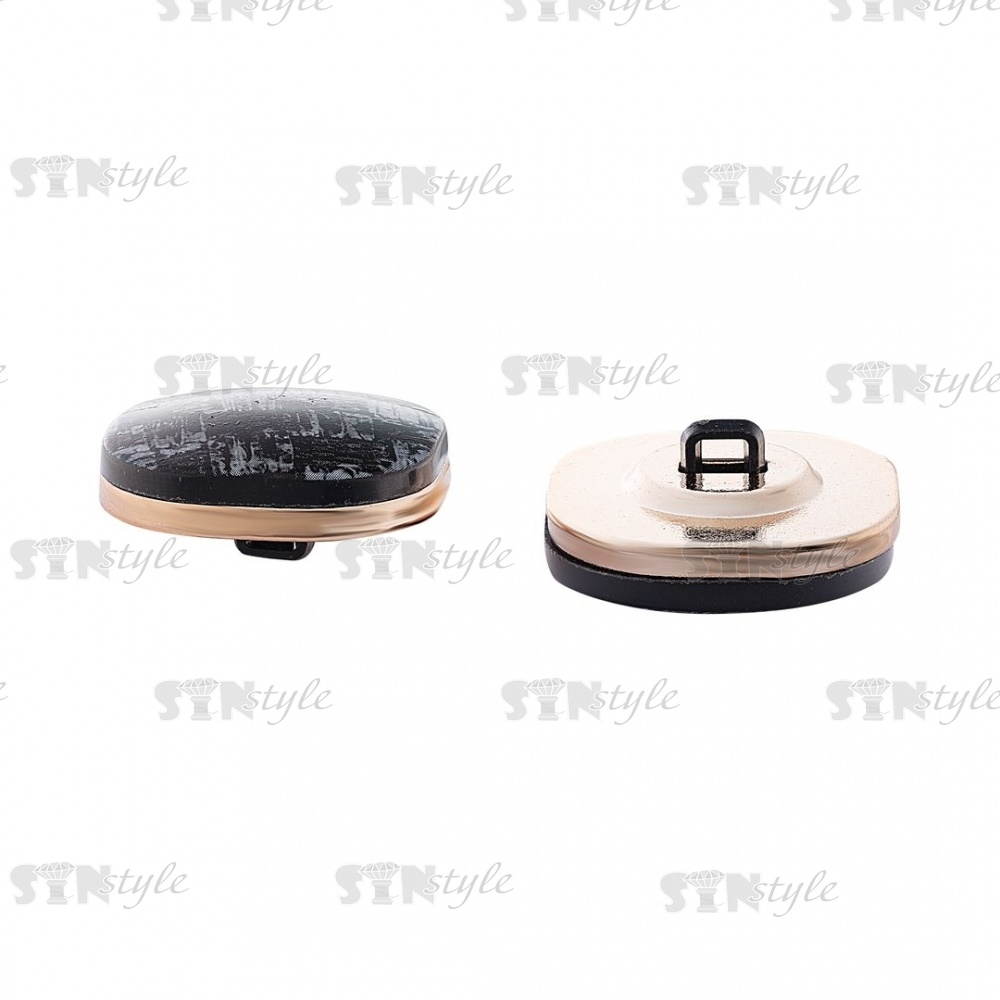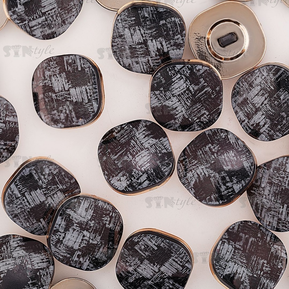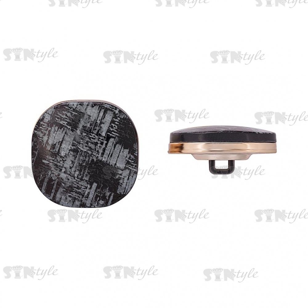 Пуговица пластиковая на ножке, квадратной формы с закругленными углами, основа золотая, шляпка черная с серым, размер 44L