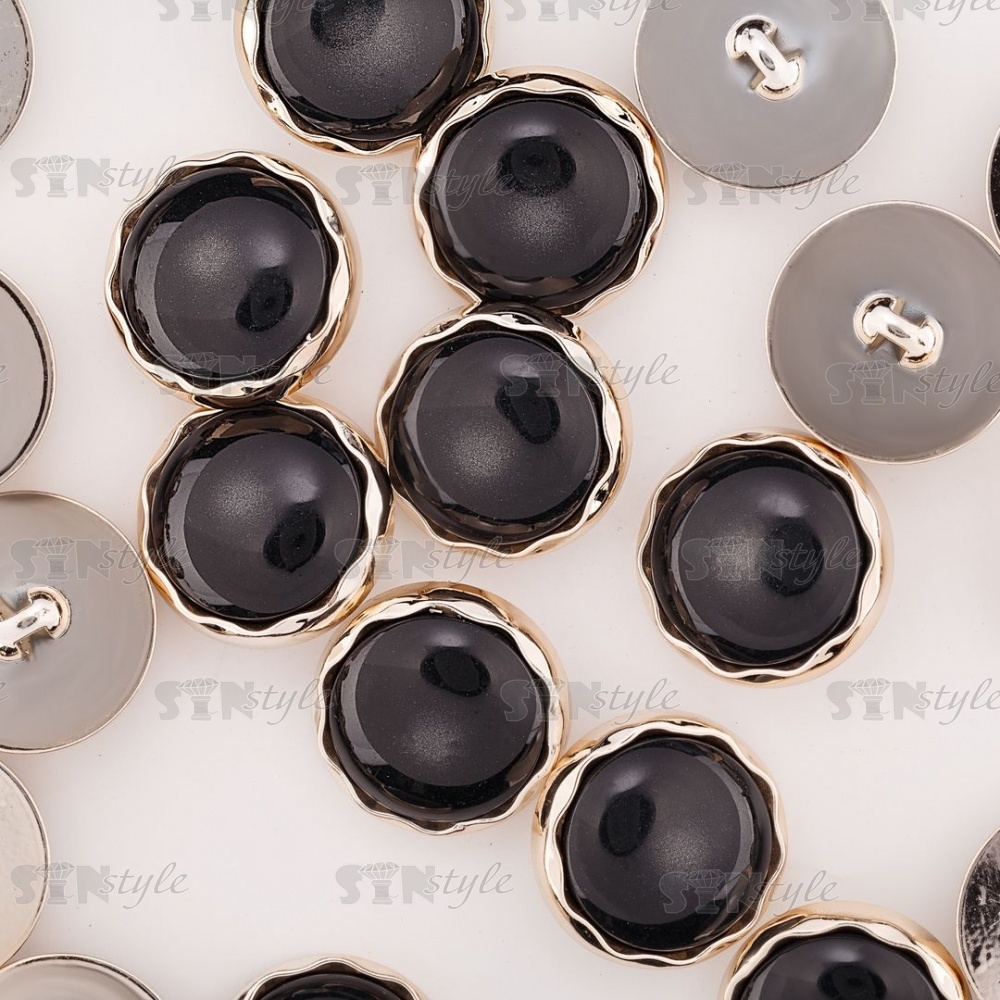 Пуговица пластиковая на ножке, размер 48L, золотая основа, черная вставка