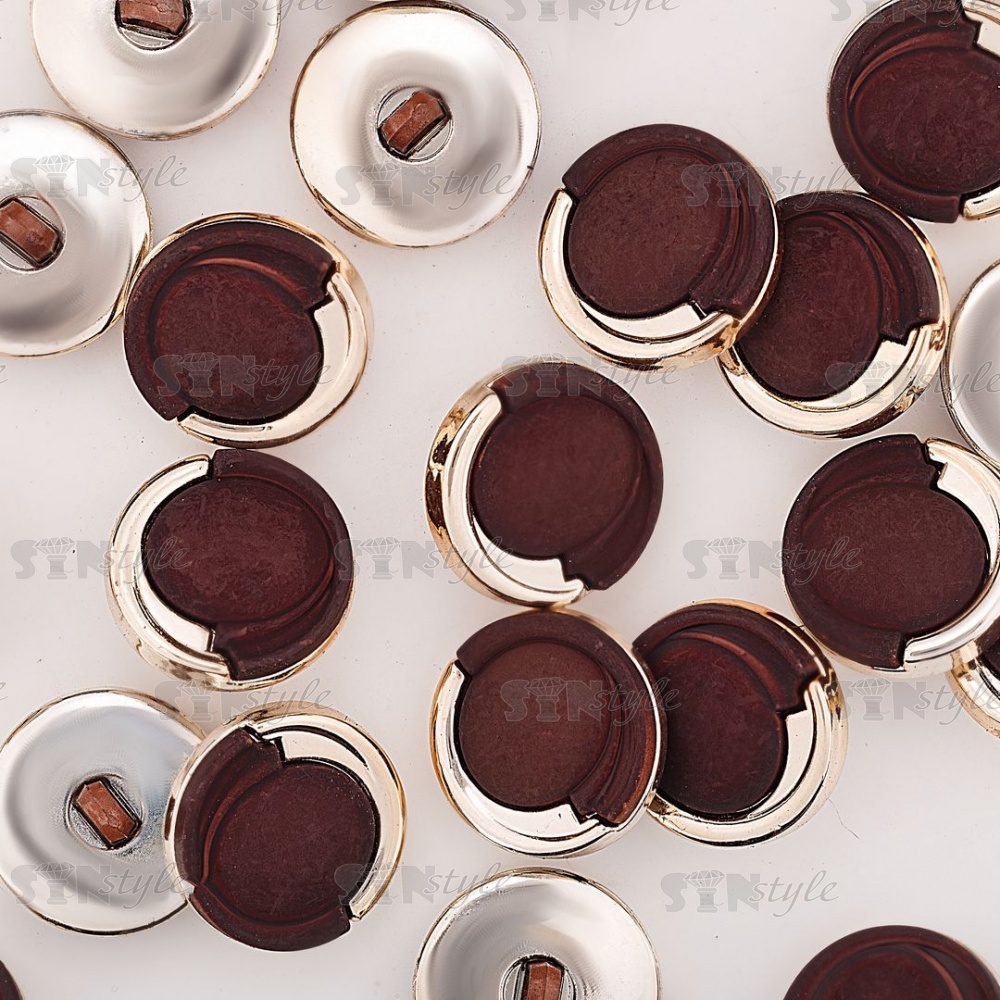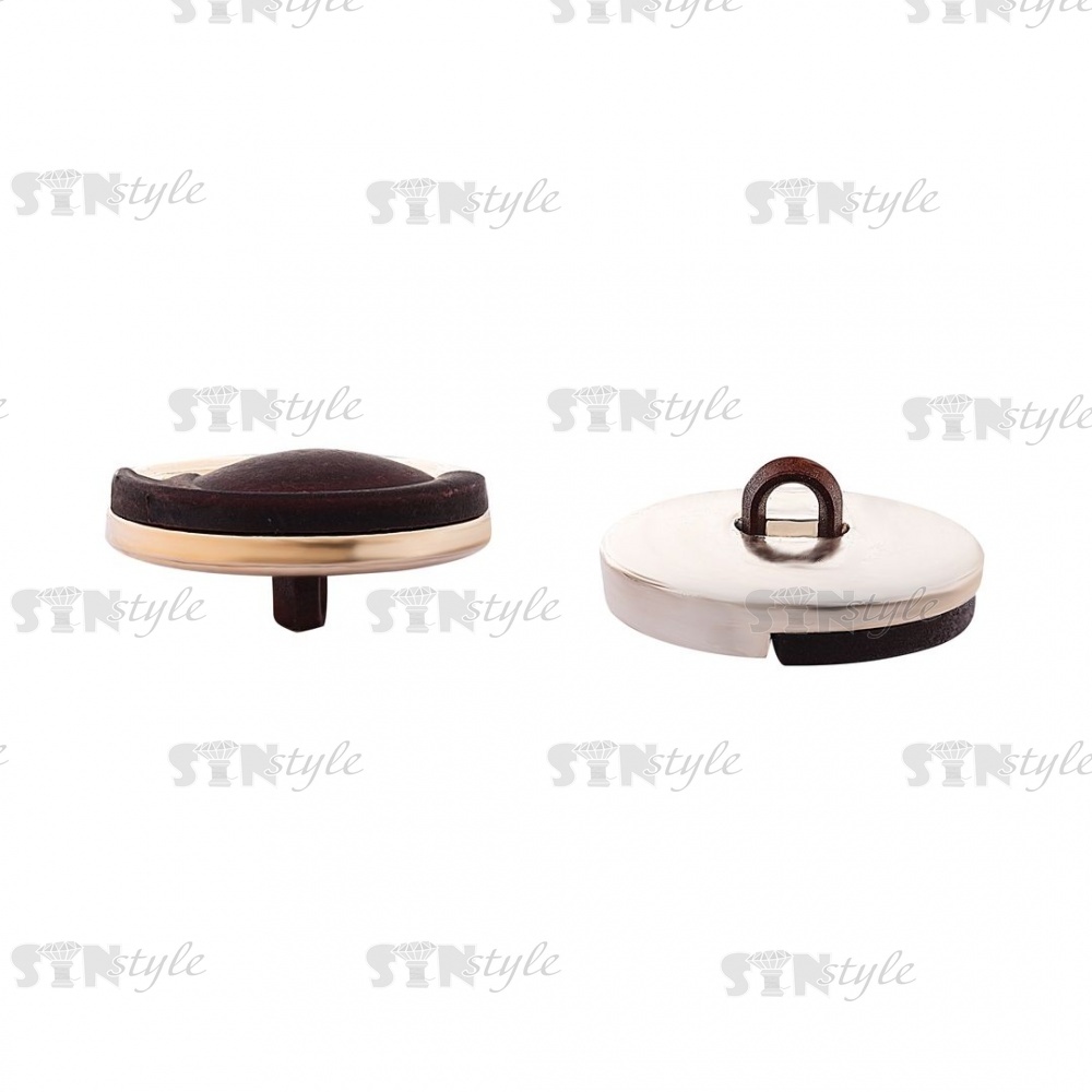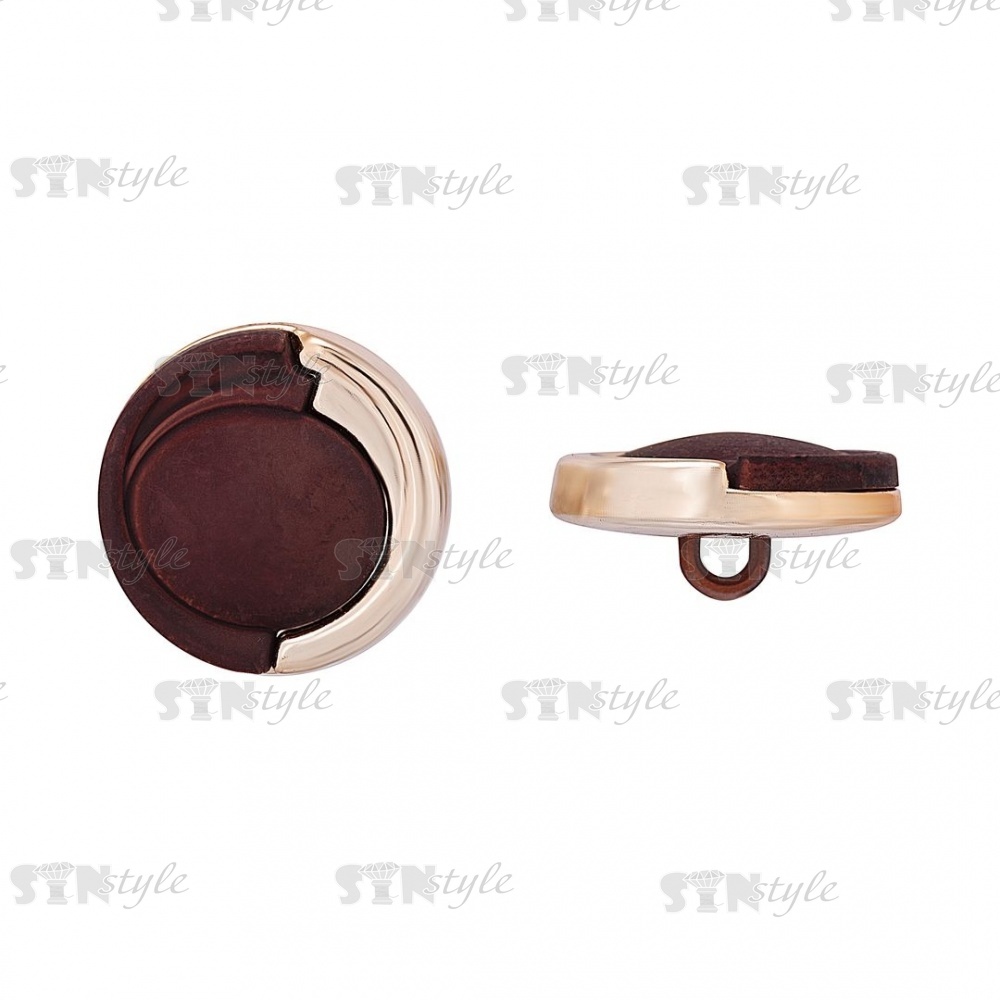 Пуговица пластиковая на ножке, круглой формы, золотая основа с коричневой вставкой, размер 40L