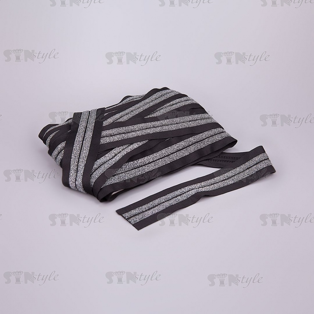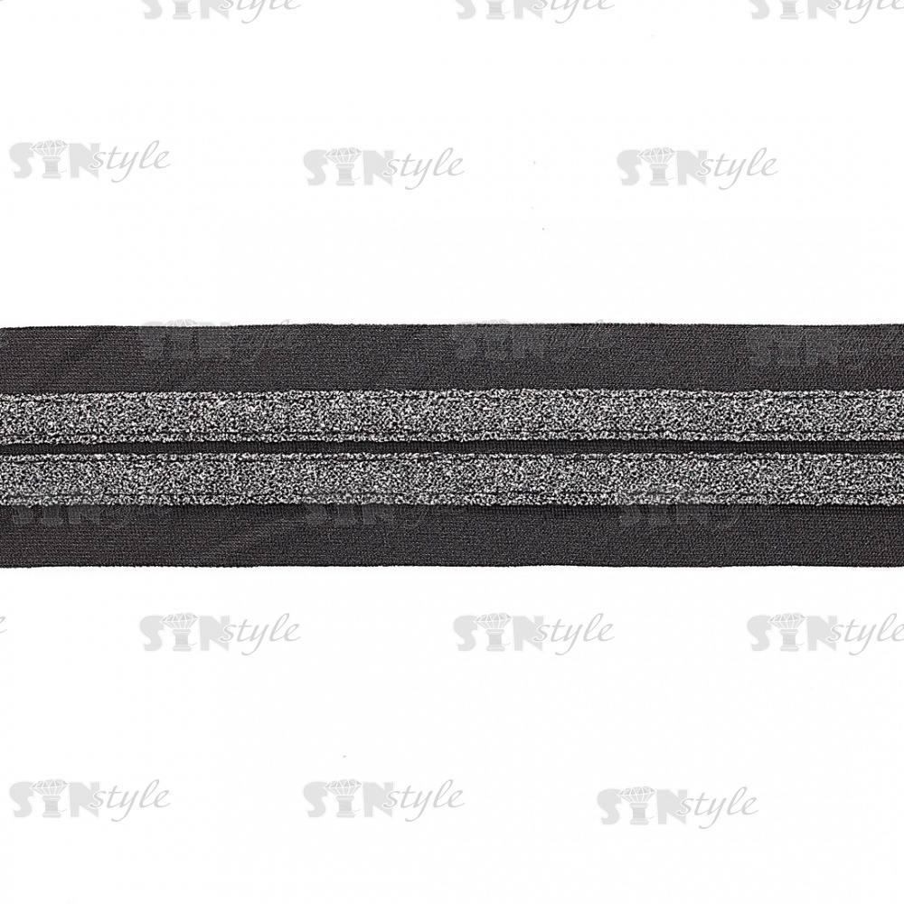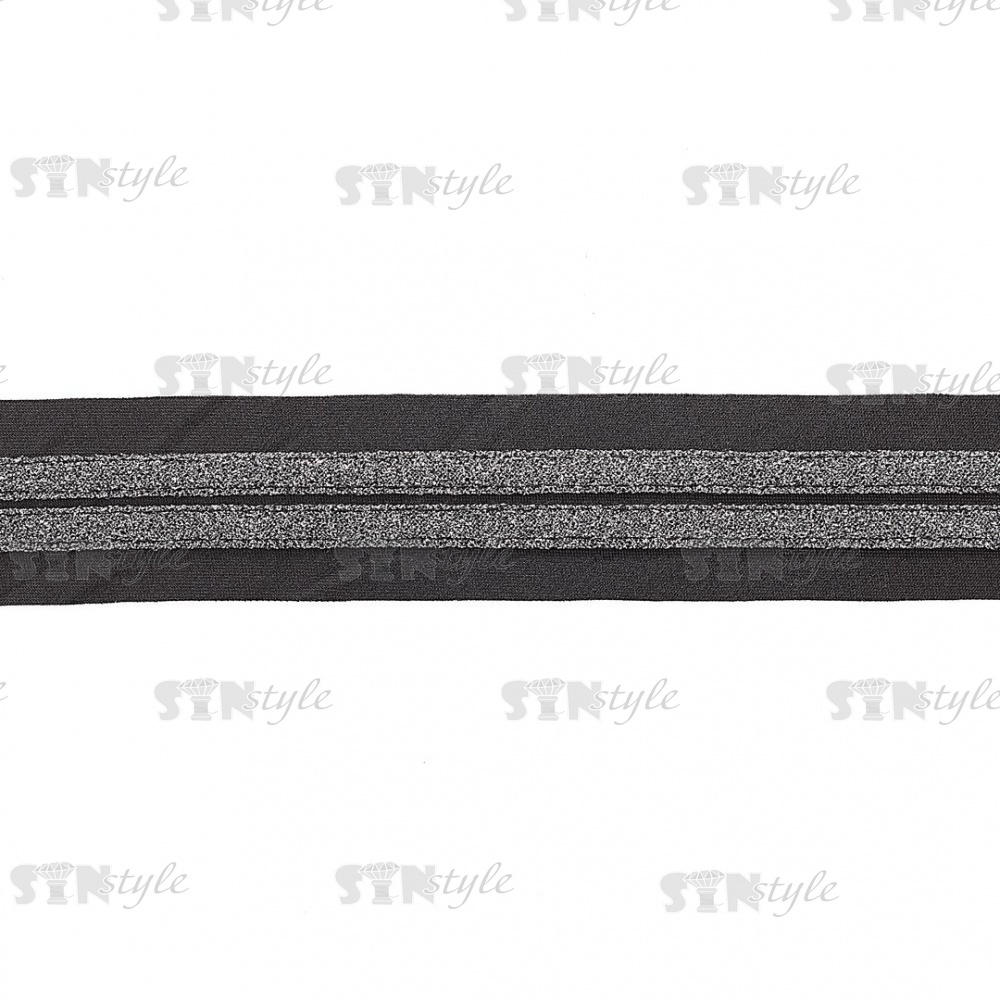 Декоративная тесьма отделочная лампасная , цвет черный+темное серебро, ширина 35 мм, намотка 15 ярдов