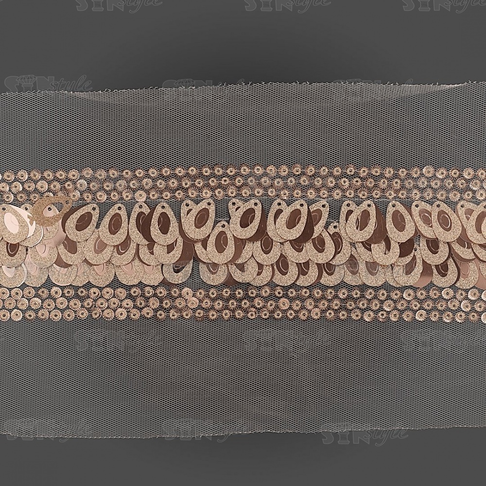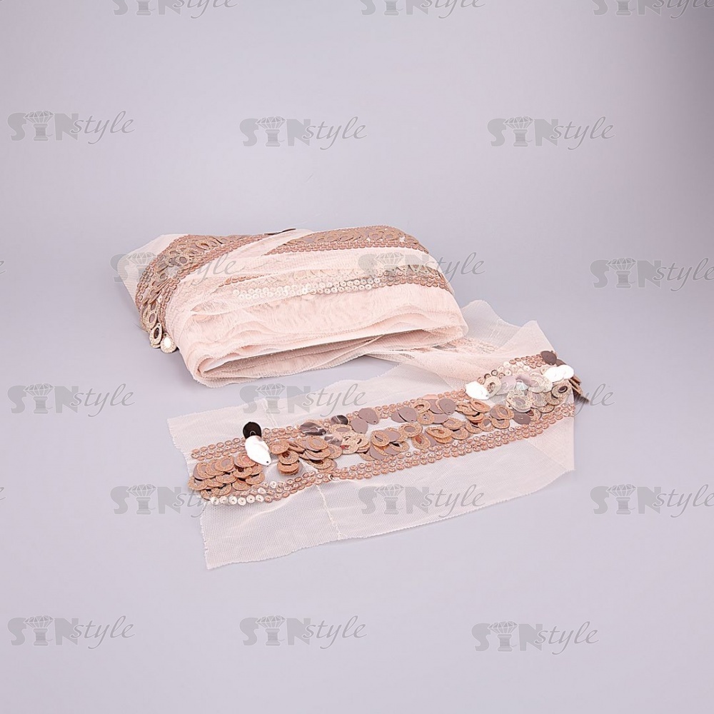 Тесьма из пайеток на сетке, цвет золотой, ширина 60 мм, намотка 16 ярдов