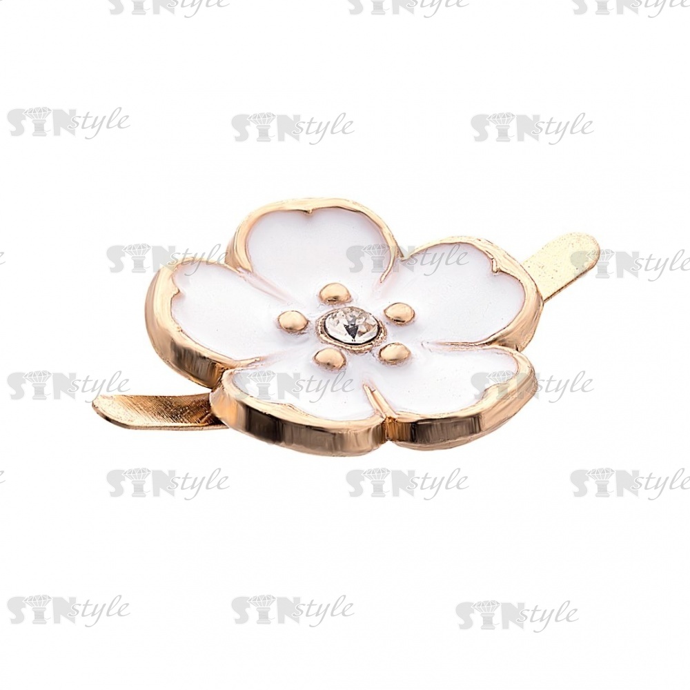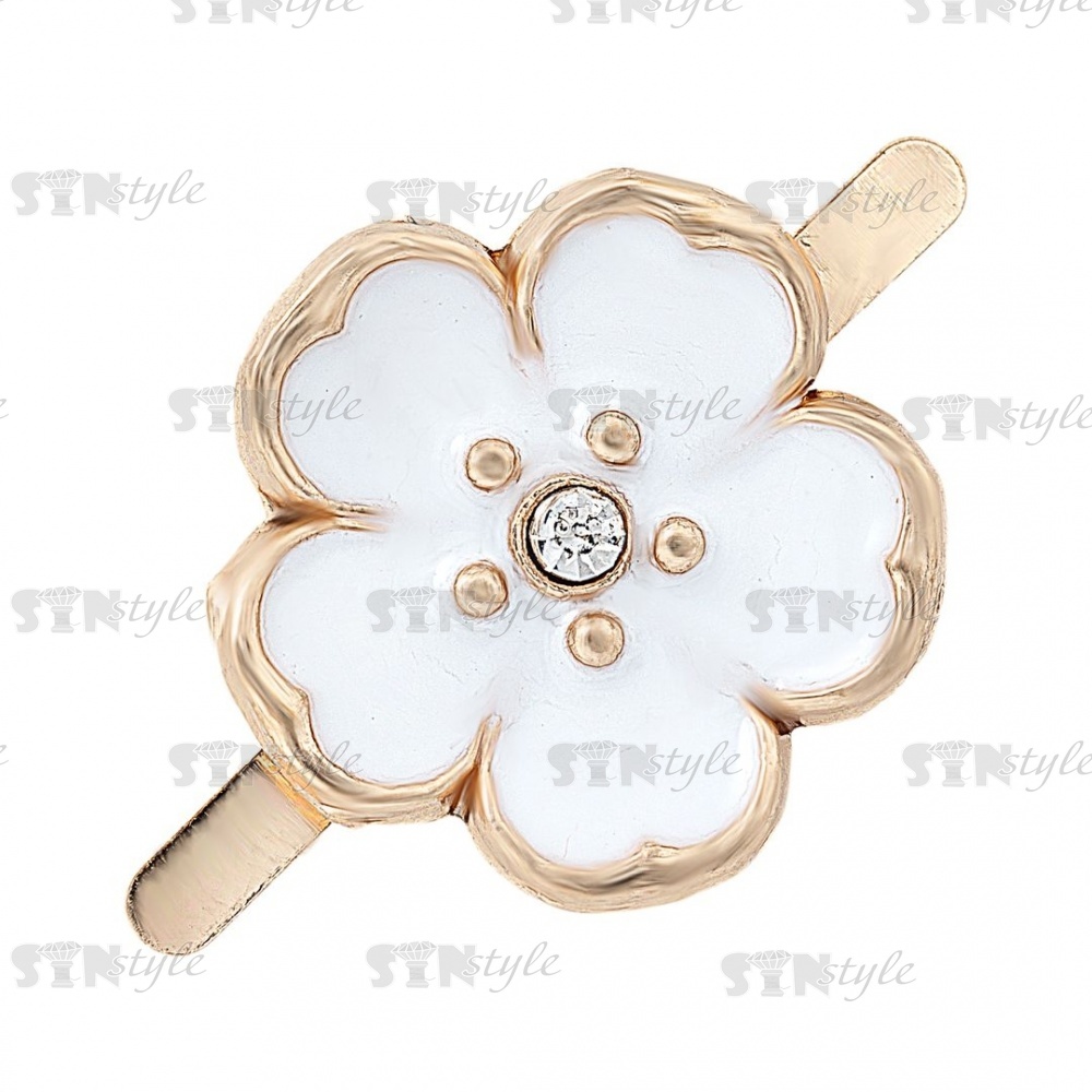 Брошь металлическая, тип крепления "усики", цвет золото+белая эмаль, диаметр 18 мм