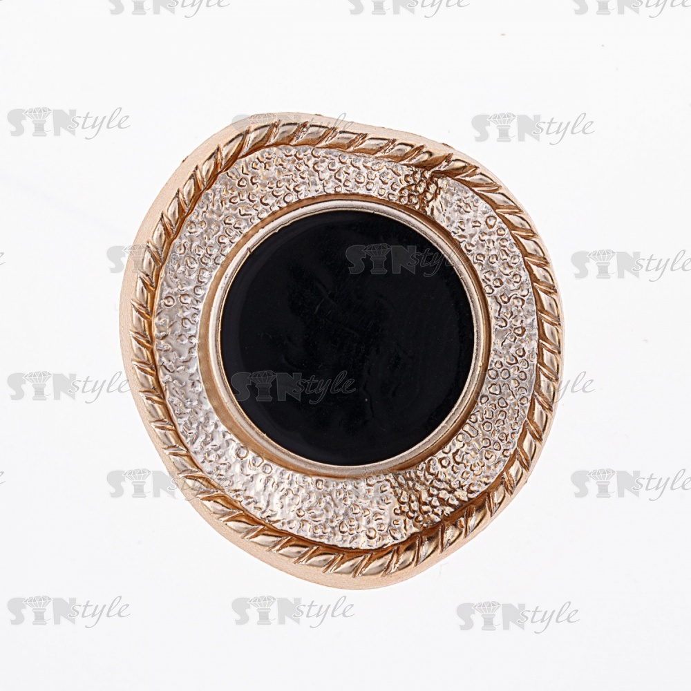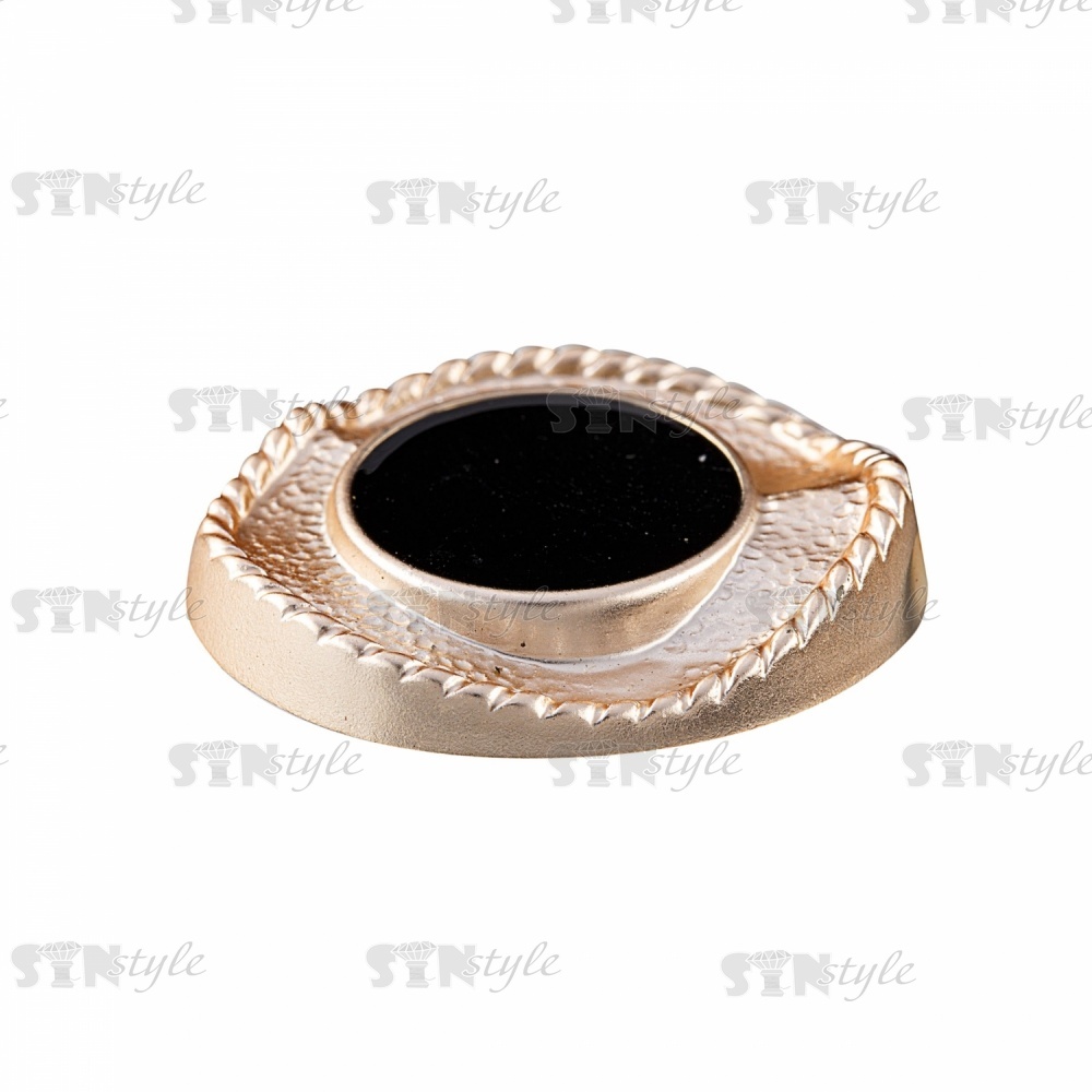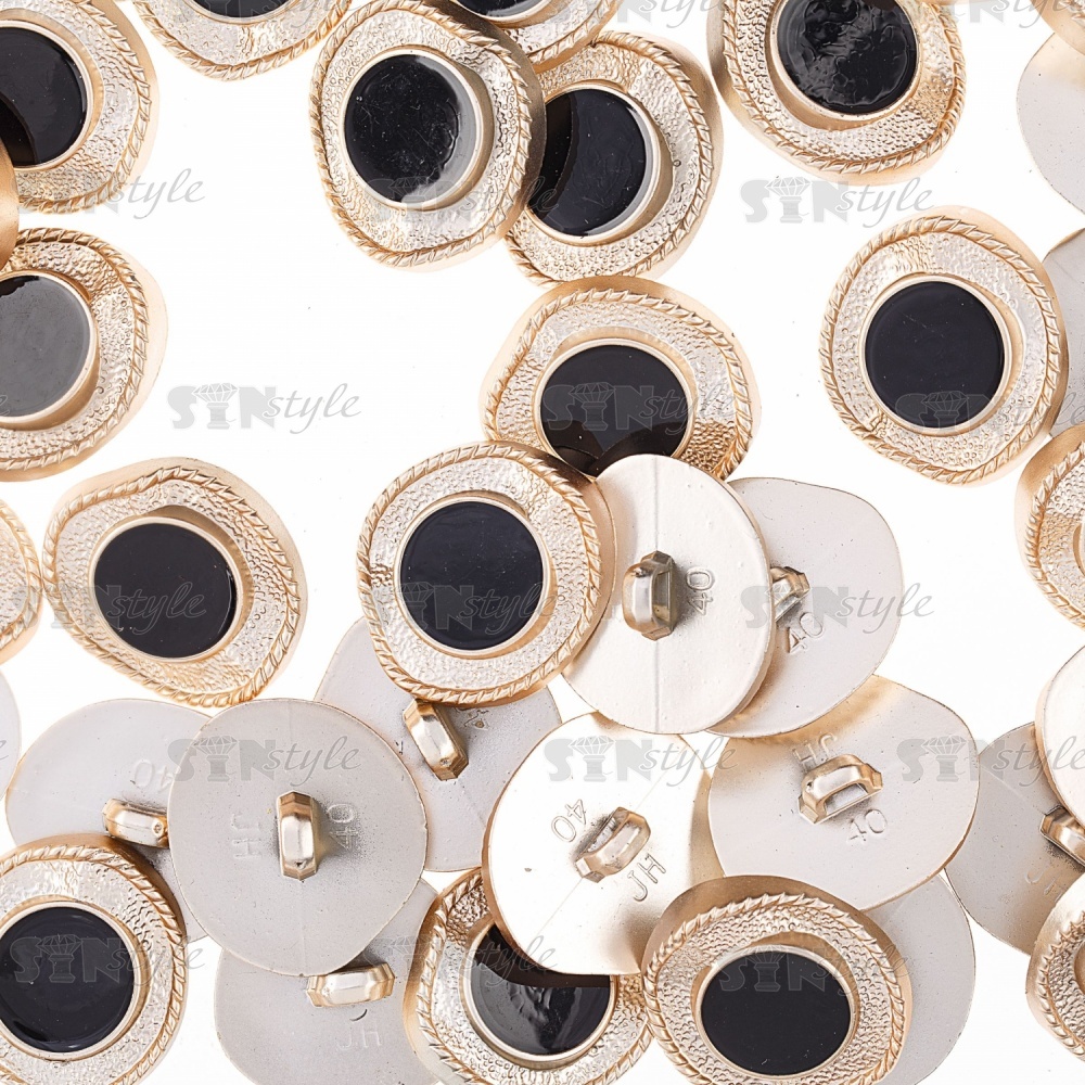 Пуговица пластиковая на ножке, размер 48L, основа золотая неправильной формы с черной эмалью