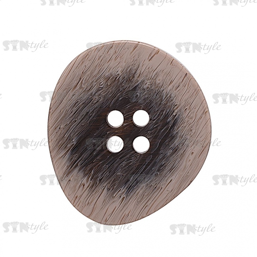 Пальтовая пуговица в форме неправильного овала выполнена из высококачественной пластмассы. Хорошо подойдет для пальто, куртки, плаща и других предметов женской и молодежной верхней одежды.
