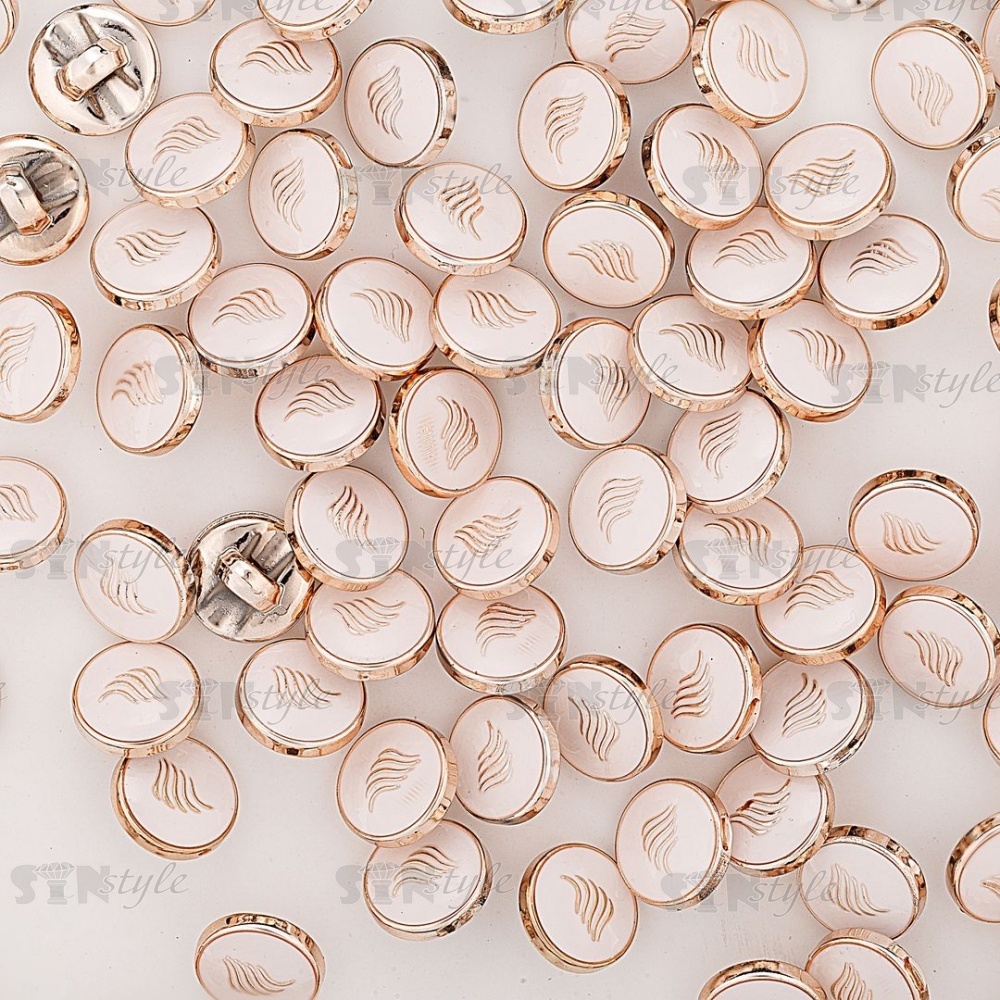 Пуговица пластиковая на ножке, круглой формы, размер 20L, золотая основа с белой эмалью