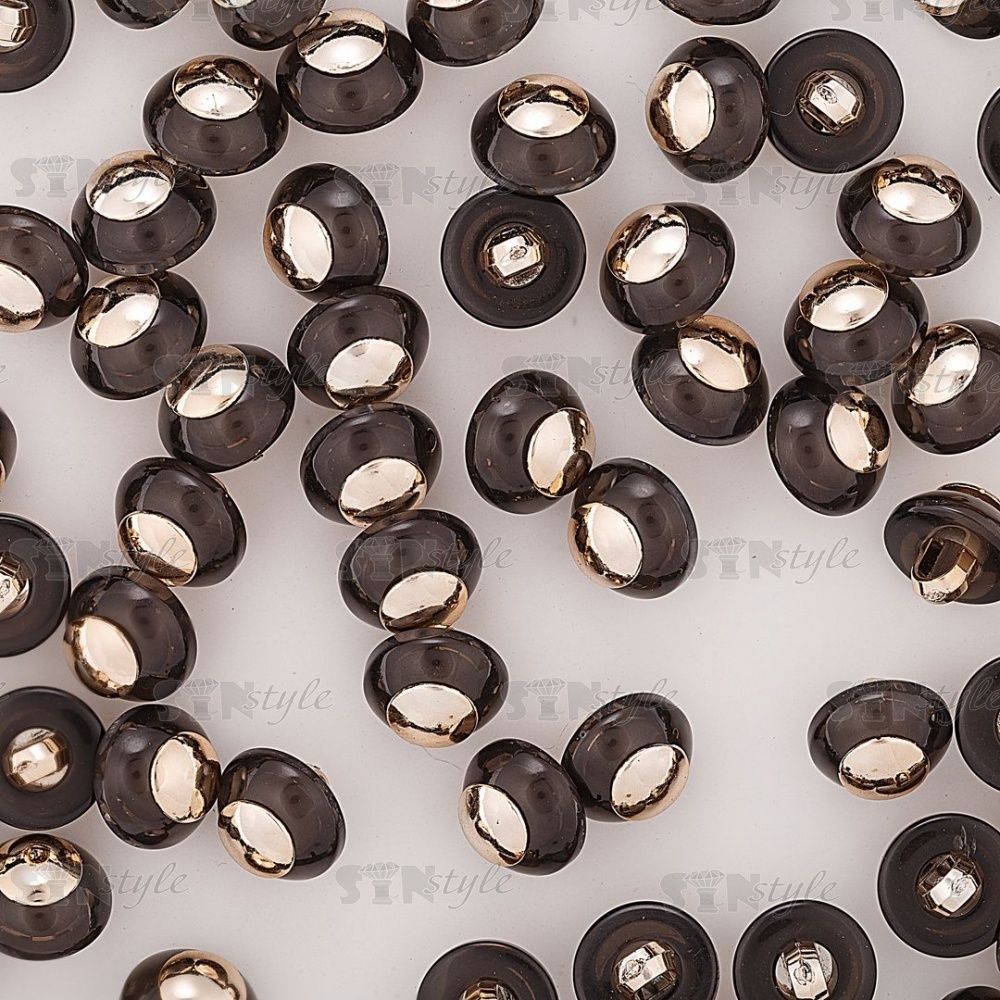 Пуговица пластиковая на ножке, в форме полусферы, размер 20L, цвет черный с золотой серединкой