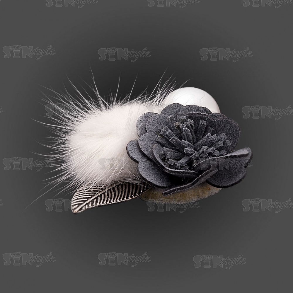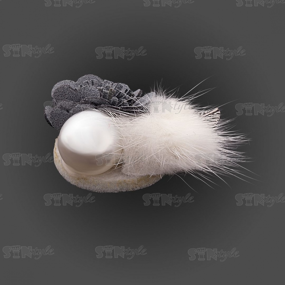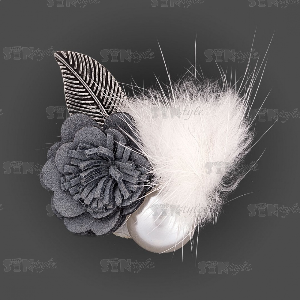Цветочки декоративные с мехом, размер 40х30 мм, цвет серый