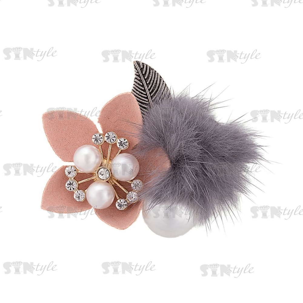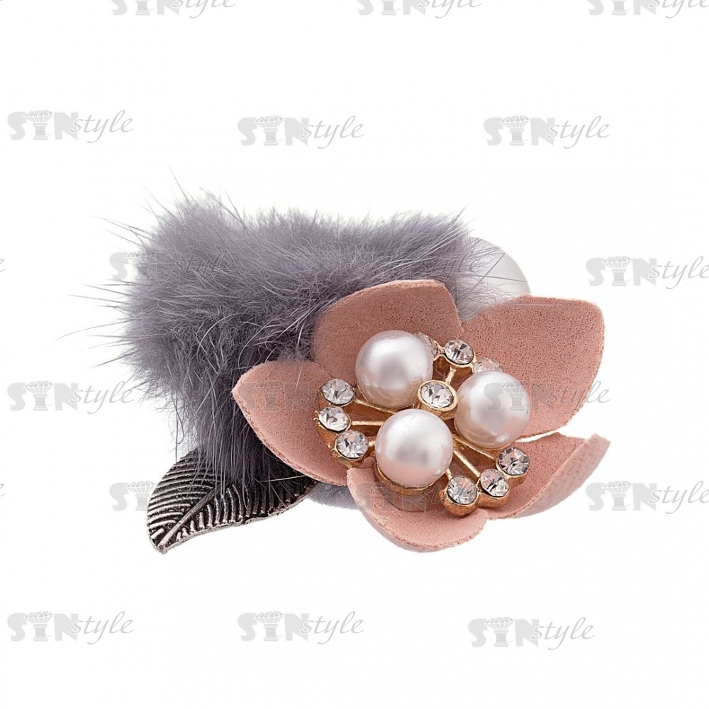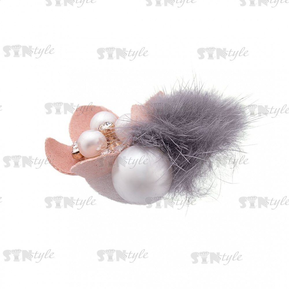 Цветочки декоративные с мехом, размер 50х40 мм, цвет бежевый