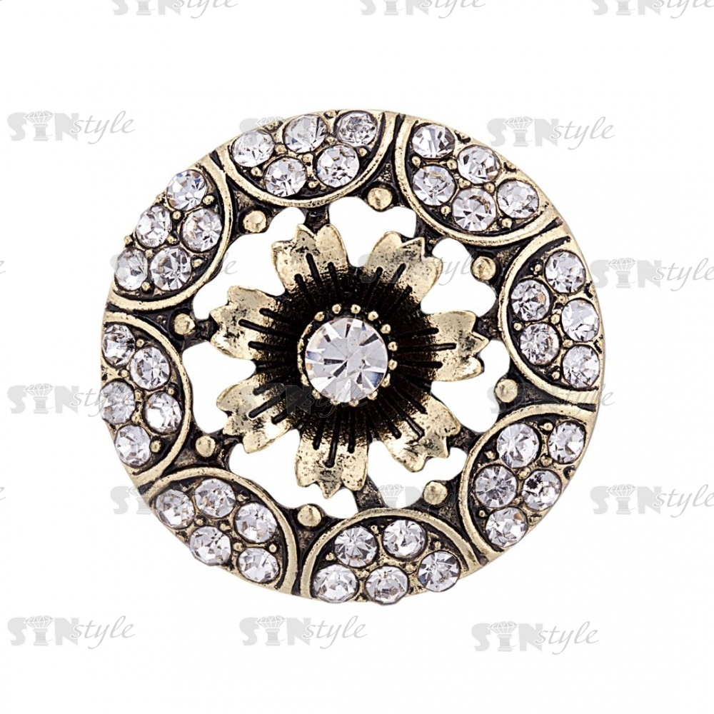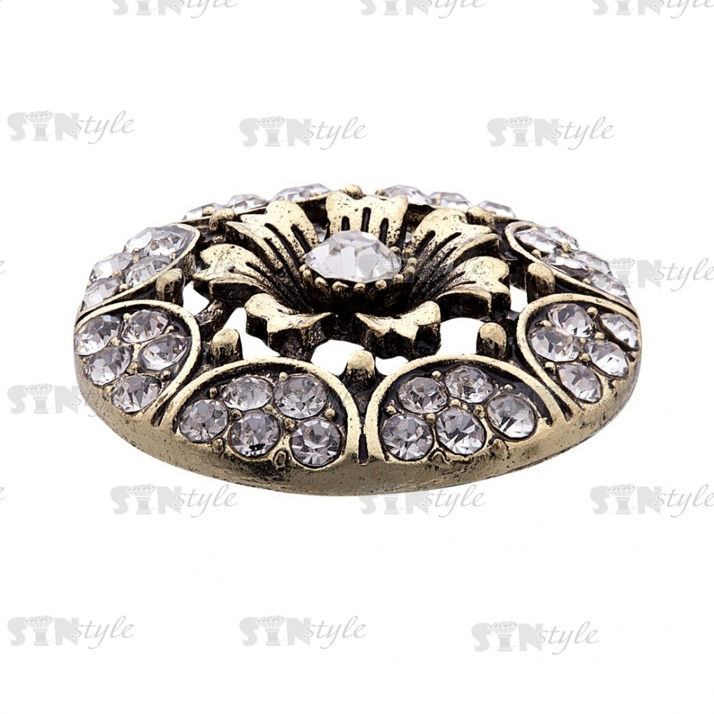 Декоративная костюмная пуговица из металла, круглой формы с фактурной ажурной поверхностью, украшенная мелкими и крупными стразами. Придаст любому изделию элегантность, сделает его стильным. Новая декоративная пуговица, это не только возможность обновления своего гардероба, но и возможность создания своего неповторимого стиля. В настоящее время пуговицы так же активно используются при изготовлении декоративных работ в технике скрапбукинг, создании картин, декорирование элементов интерьера. Создавайте свои уникальные изделия используя наши чудесные пуговицы.