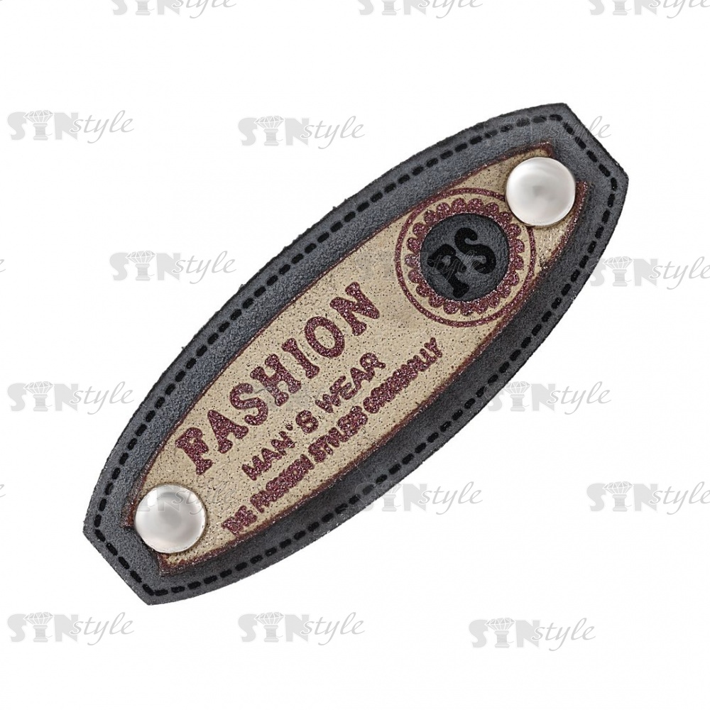 Аппликация пришивная ПВХ, двухслойная с заклепками и принтом, размер 45x17, цвет серый