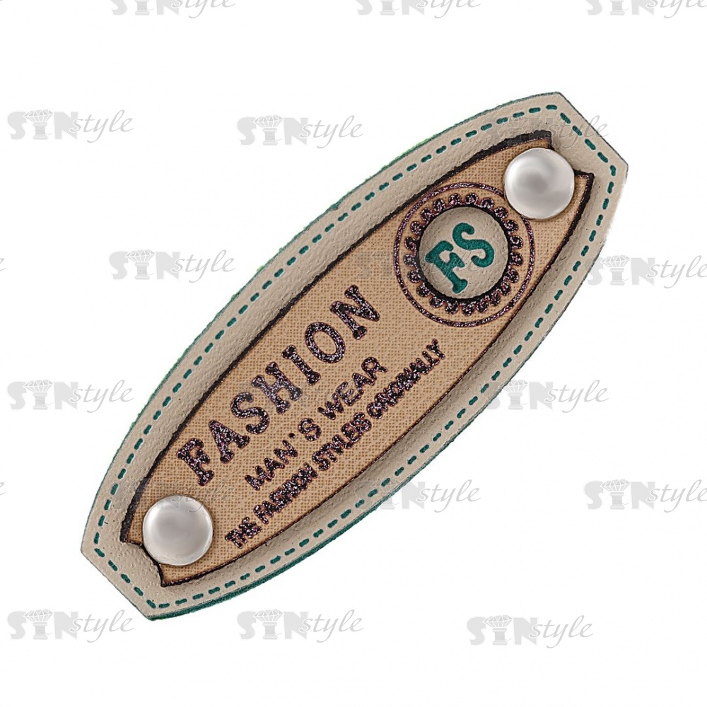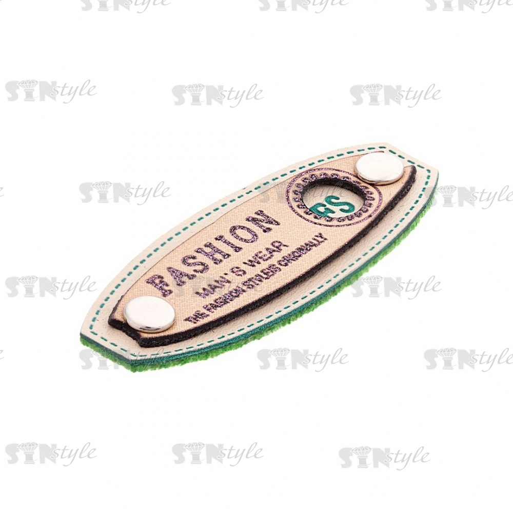 Аппликация пришивная ПВХ, двухслойная с заклепками и принтом, размер 45x17, цвет шампань