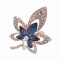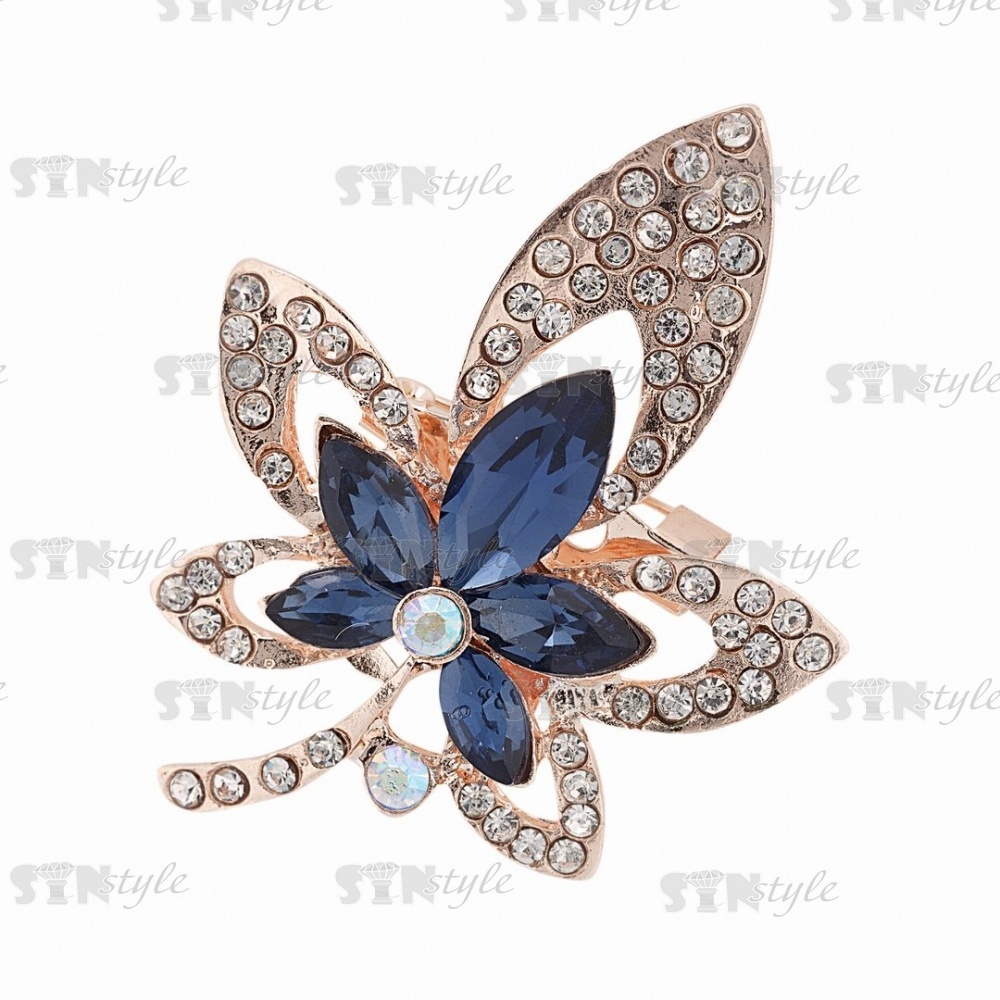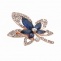 Брошь металлическая со стразами, застежка булавка, цвет золото+белый+синий, размер 38х48 мм