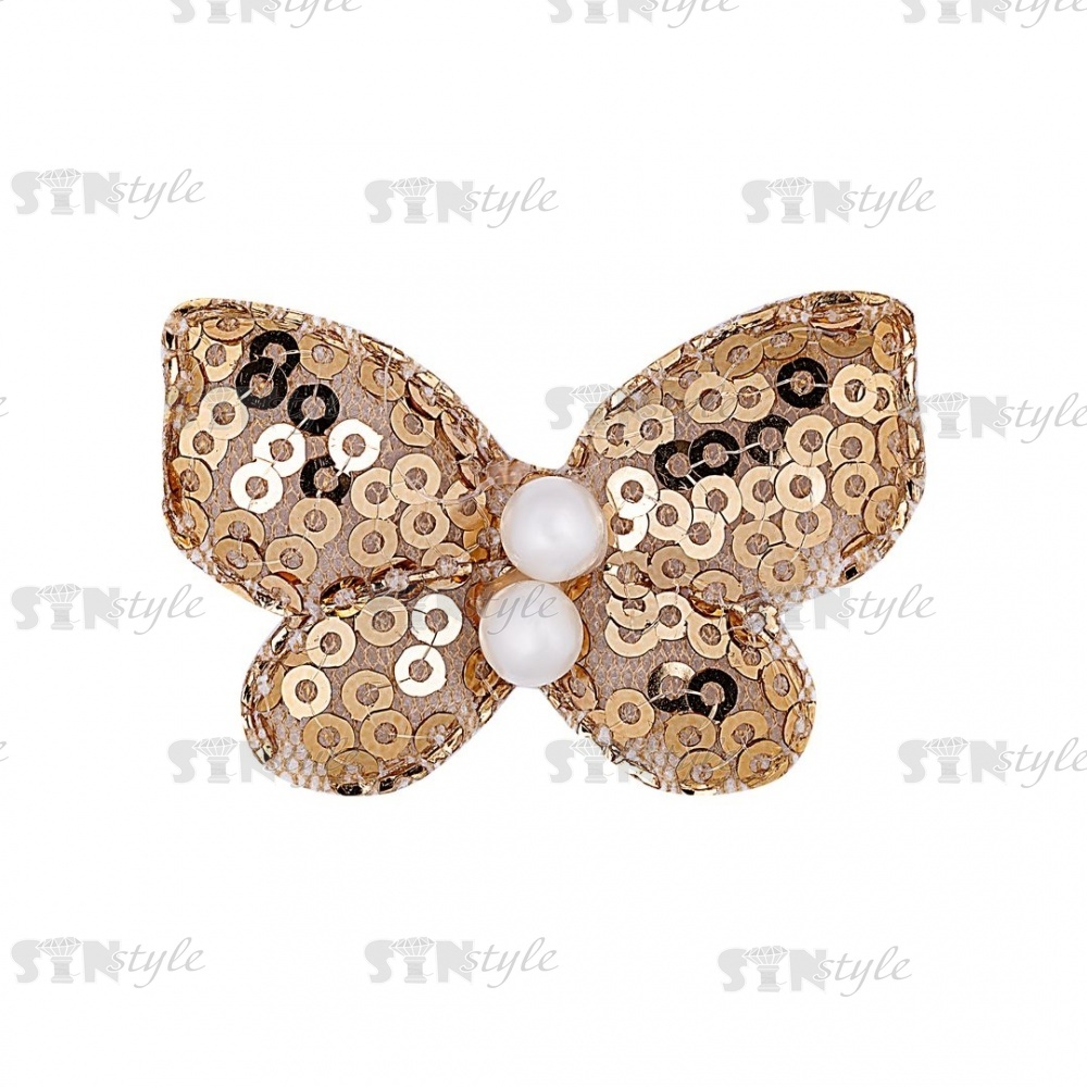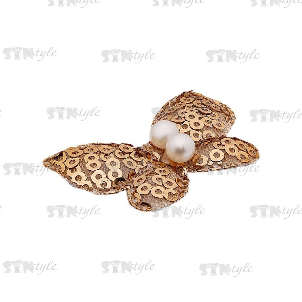 Аппликация 3D "Бабочка", цвет золотой + белые бусины, размер 40х30 мм