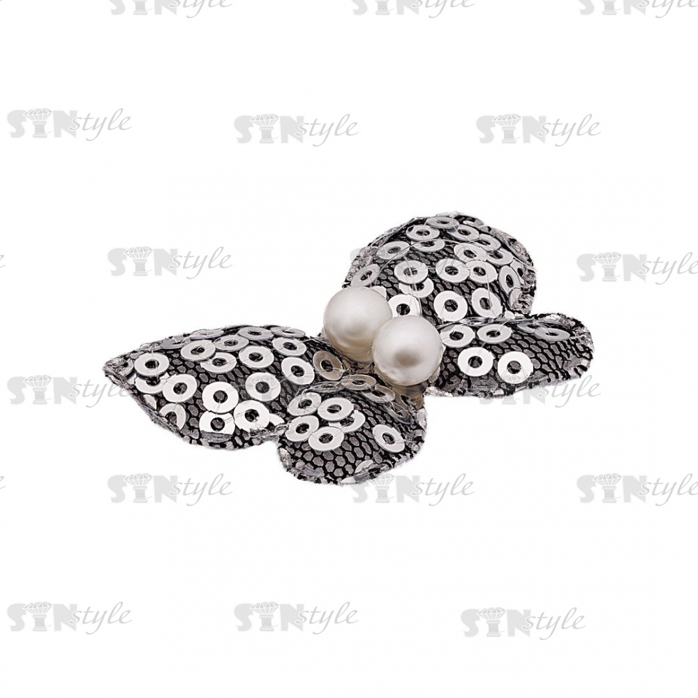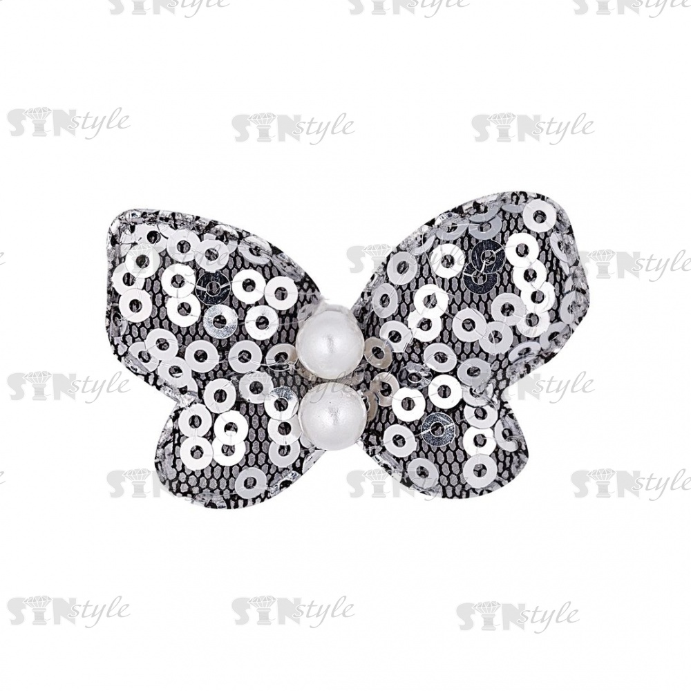 Аппликация 3D "Бабочка", цвет серебряный+белые бусины, размер 40х26 мм