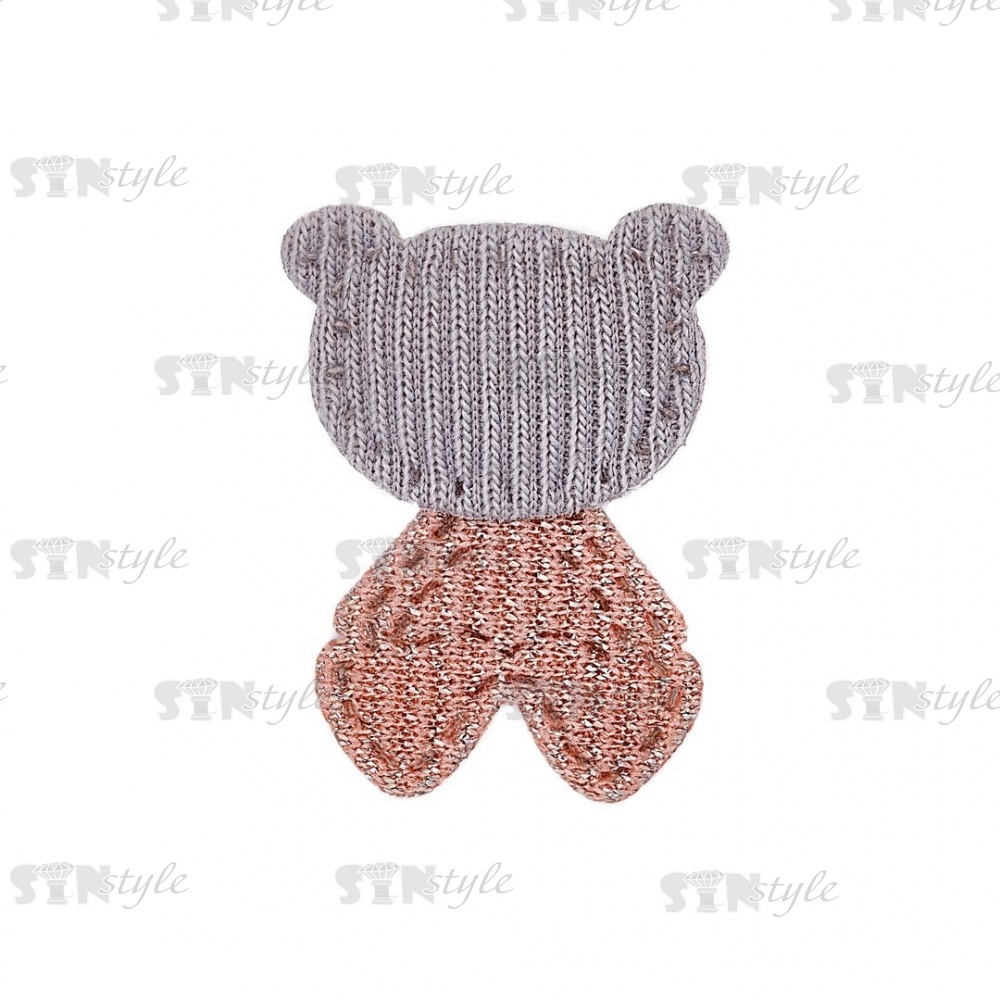 Аппликация 3D "Мишка", цвет грязно-розовый+серый, размер 20х30 мм