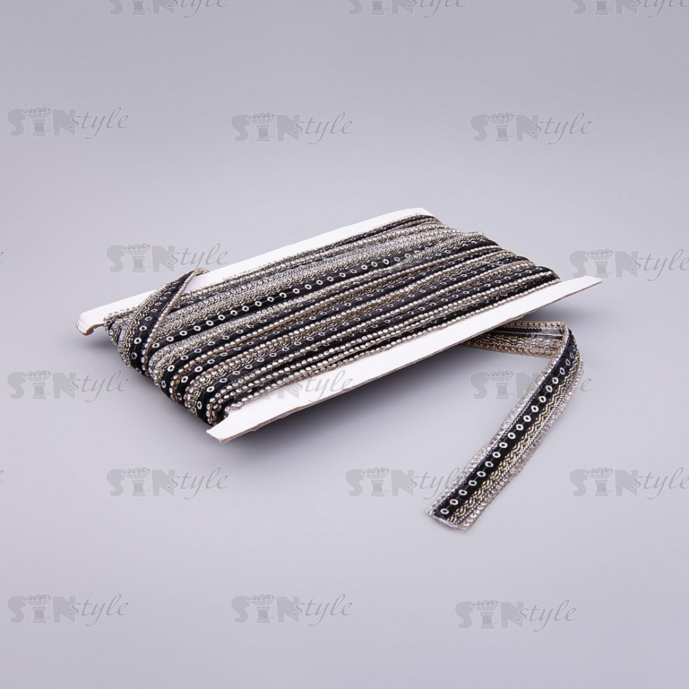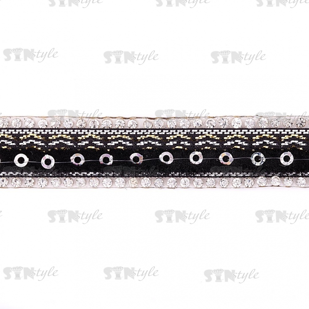 Лента декоративная с пайетками и стразами на термоклеевой основе, цвет черный+серебряный, ширина 15 мм, намотка 10 ярдов