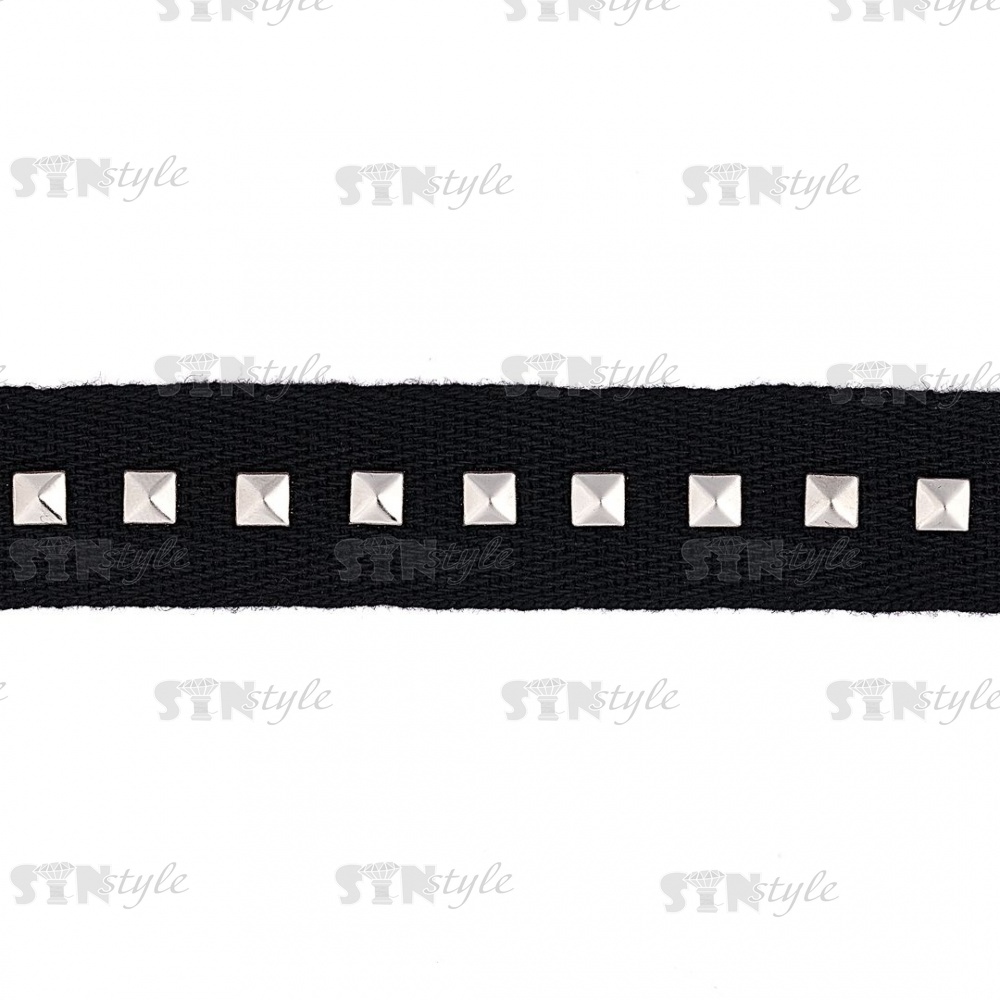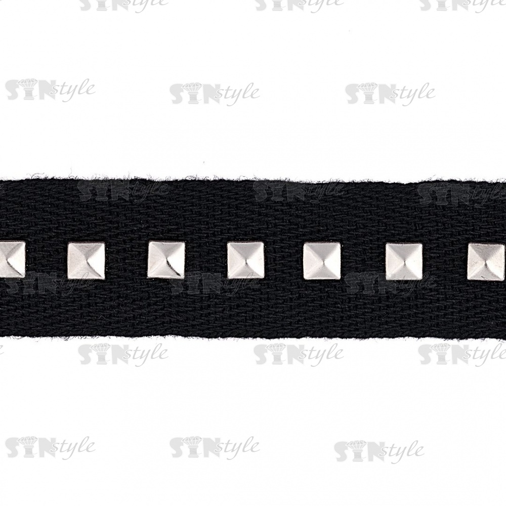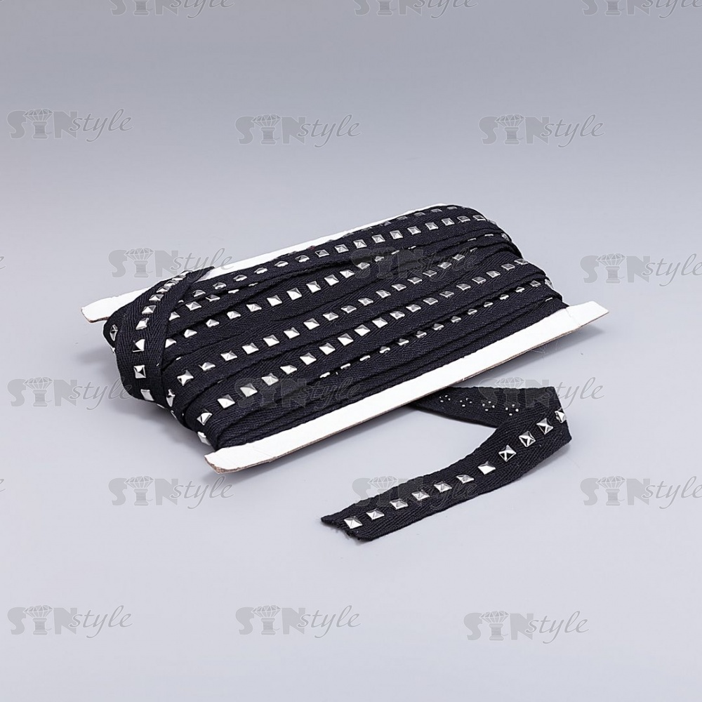 Тесьма отделочная с заклепками, ширина 20 мм, цвет черный+никель, намотка 15 ярдов