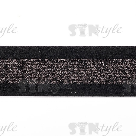 Лента бархатная с люрексом, ширина 25 мм, цвет черный, намотка 25 ярдов