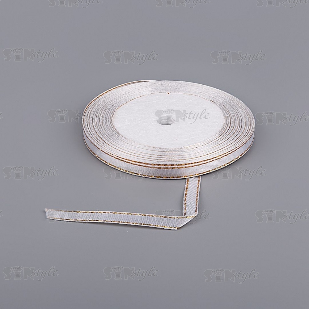 Декоративная тесьма отделочная атласная с золотой нитью по всей длине, цвет серый, ширина 7 мм, намотка 25 ярдов