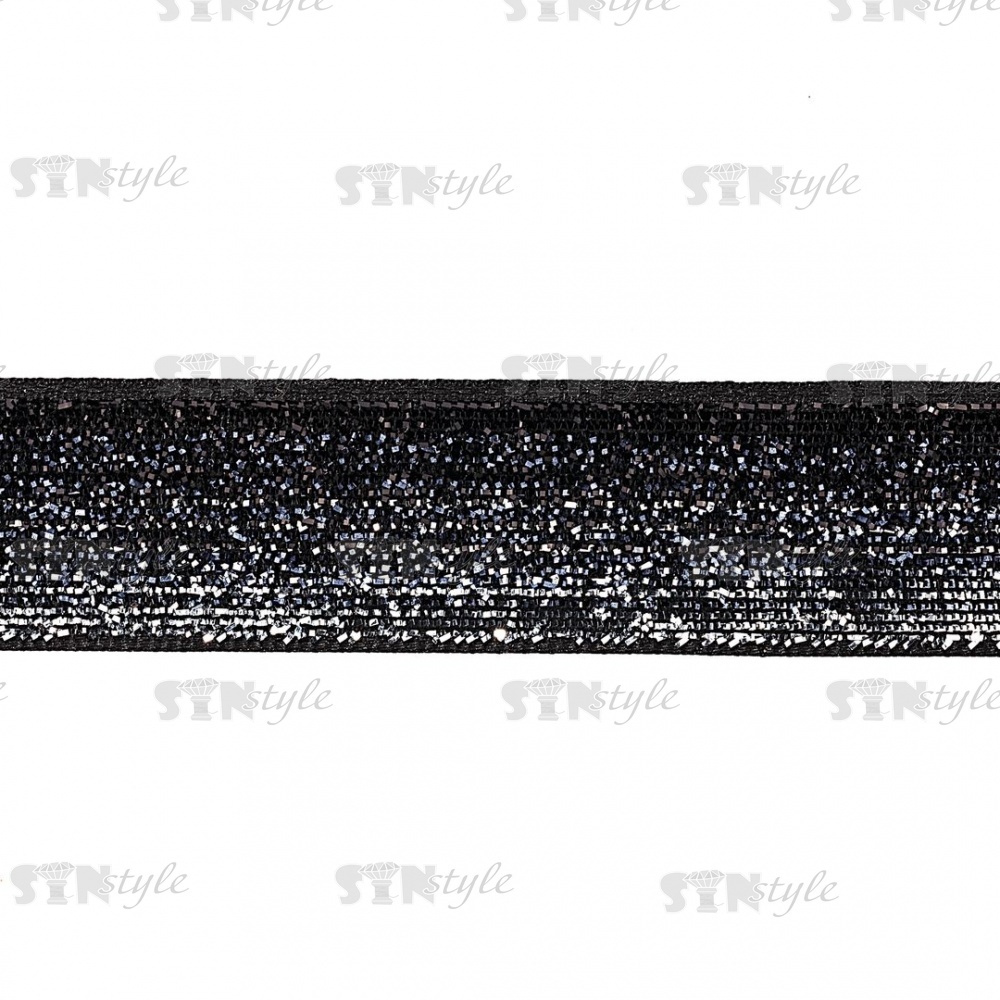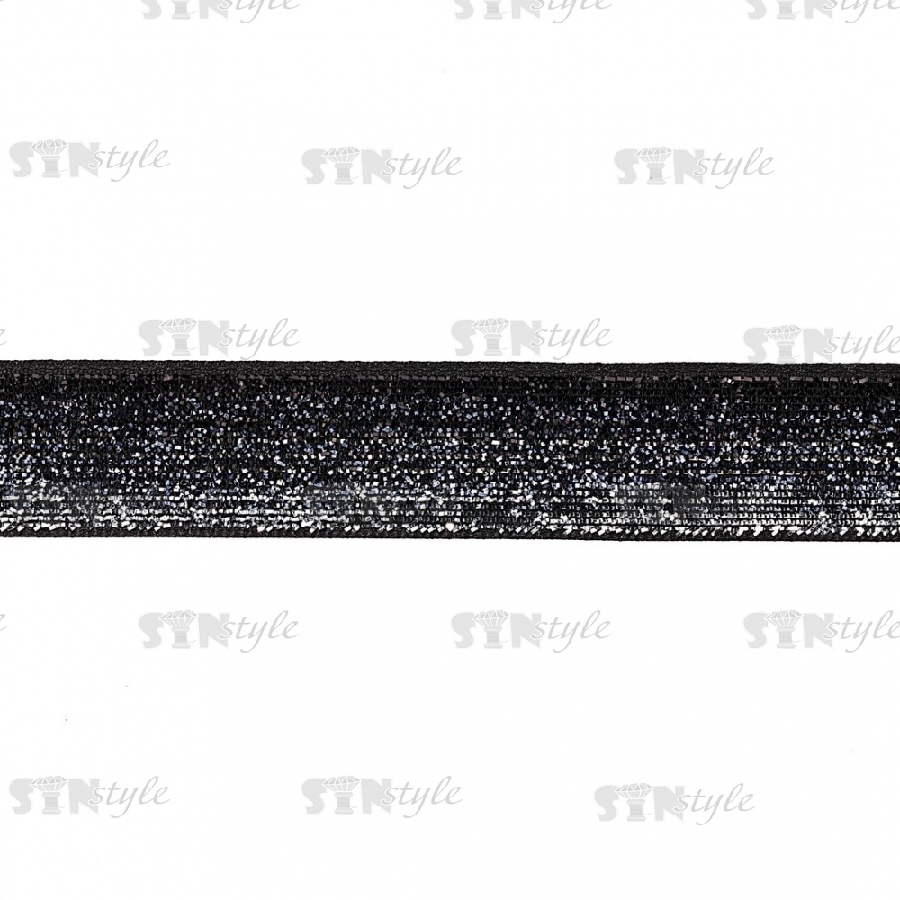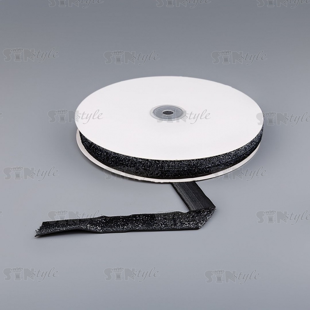 Лента бархатная с люрексом, ширина 20 мм, цвет черный+серебряный, намотка 50 ярдов
