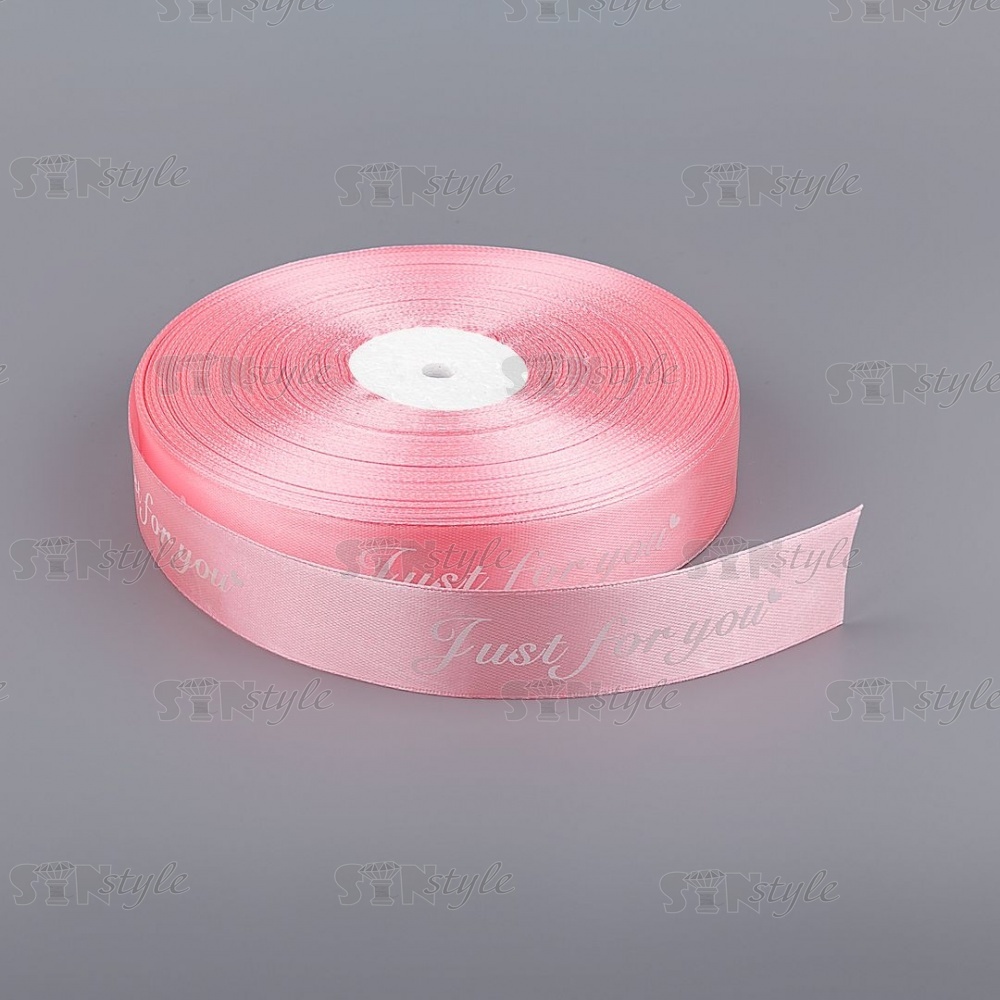 Лента атласная с принтом, ширина 25 мм, намотка 100 ярдов, цвет розовый (№04)