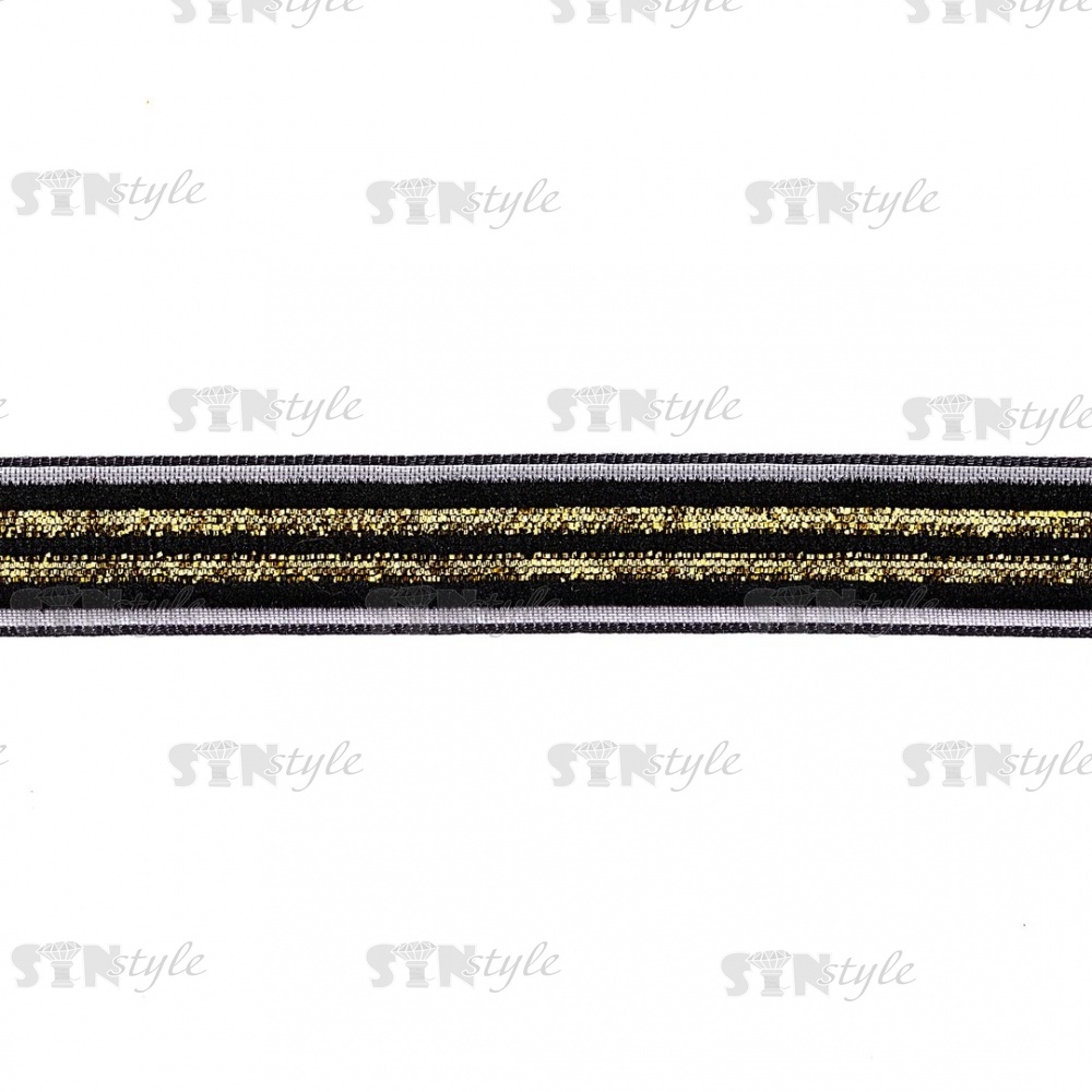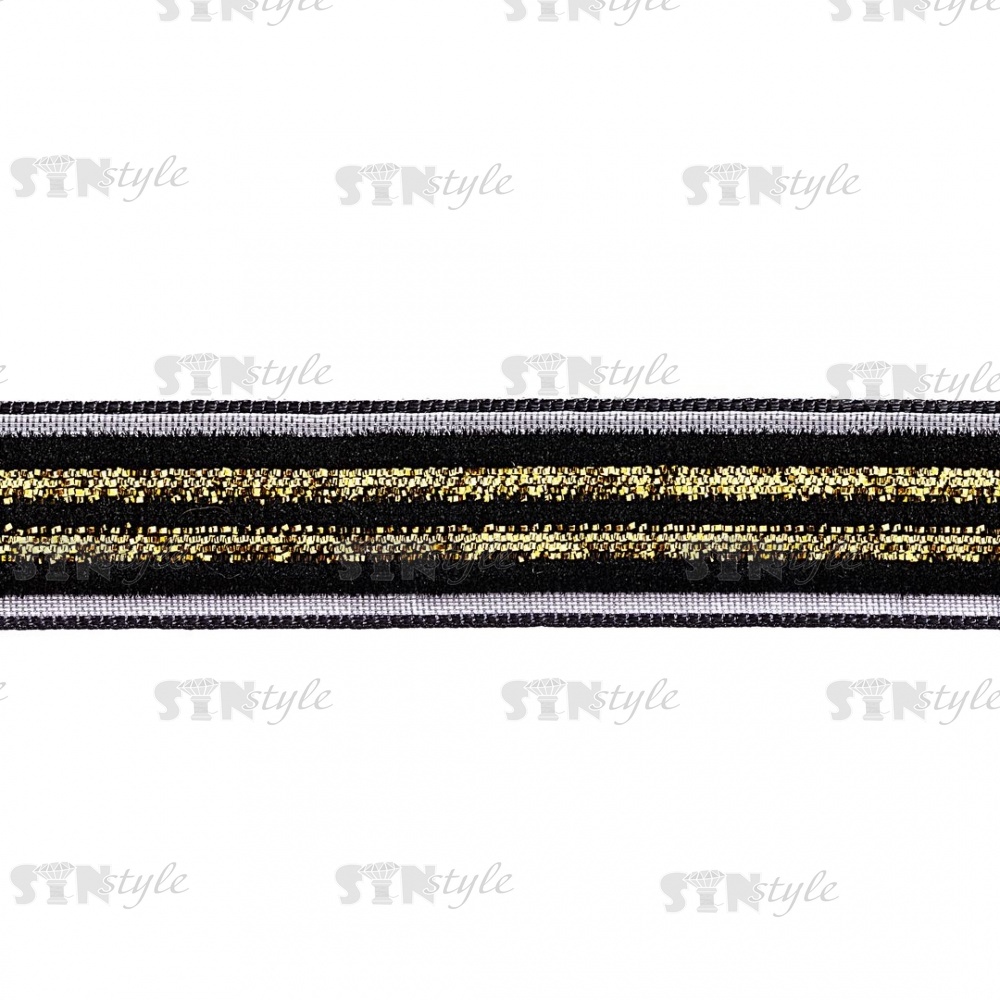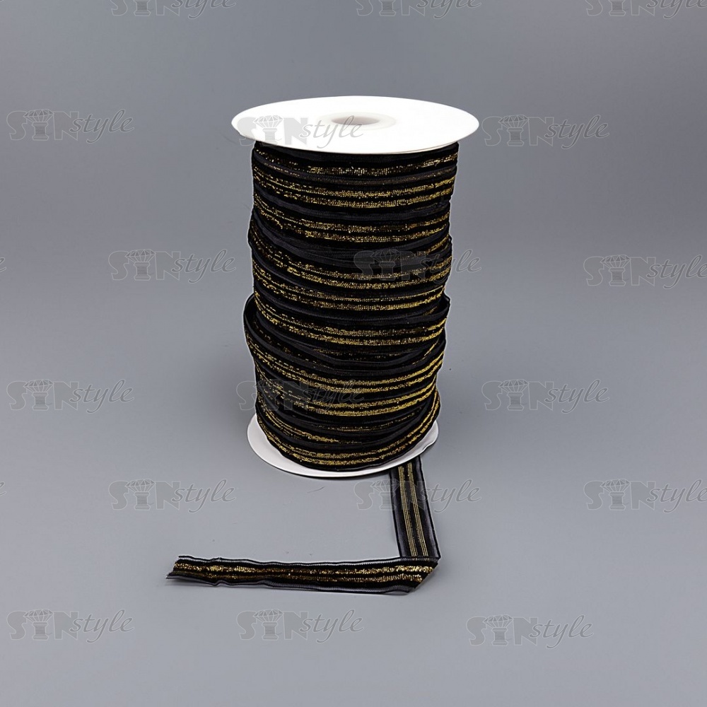 Лента бархатная с люрексом, ширина 15 мм, цвет черный+золотой, намотка 50 ярдов