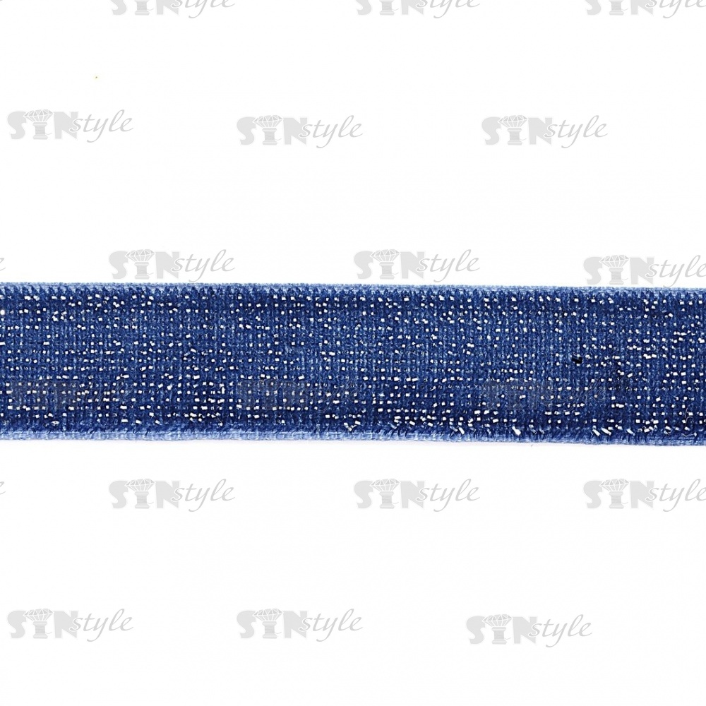 Лента бархатная с люрексом, ширина 15 мм, цвет 194 (джинс), намотка 20 ярдов
