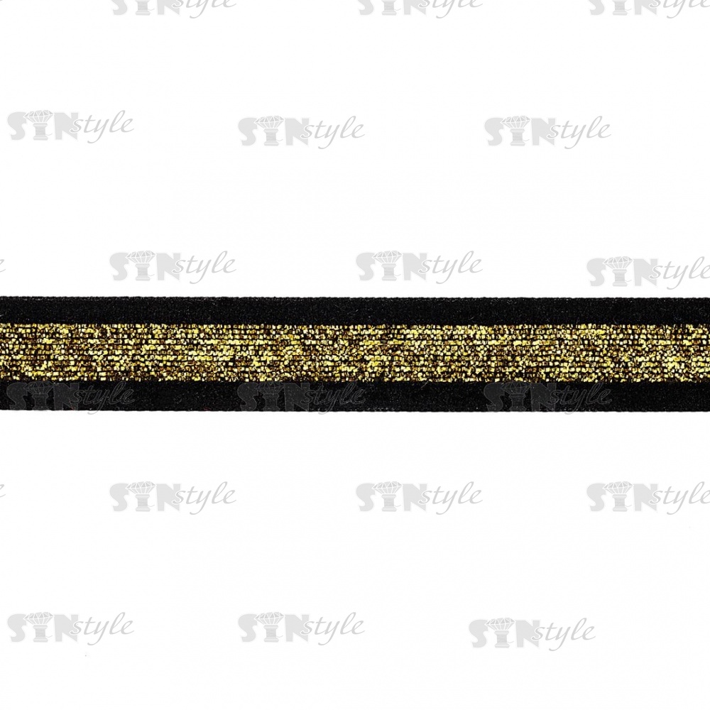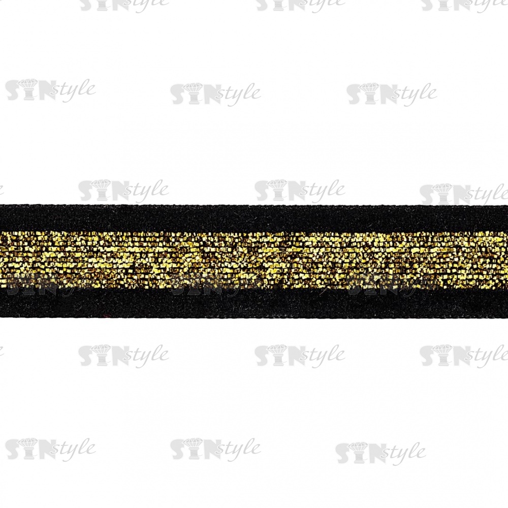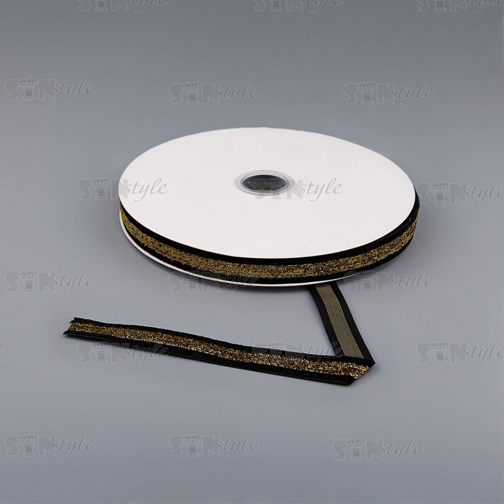 Лента бархатная с люрексом, ширина 15 мм, цвет черный+золотой, намотка 25 ярдов