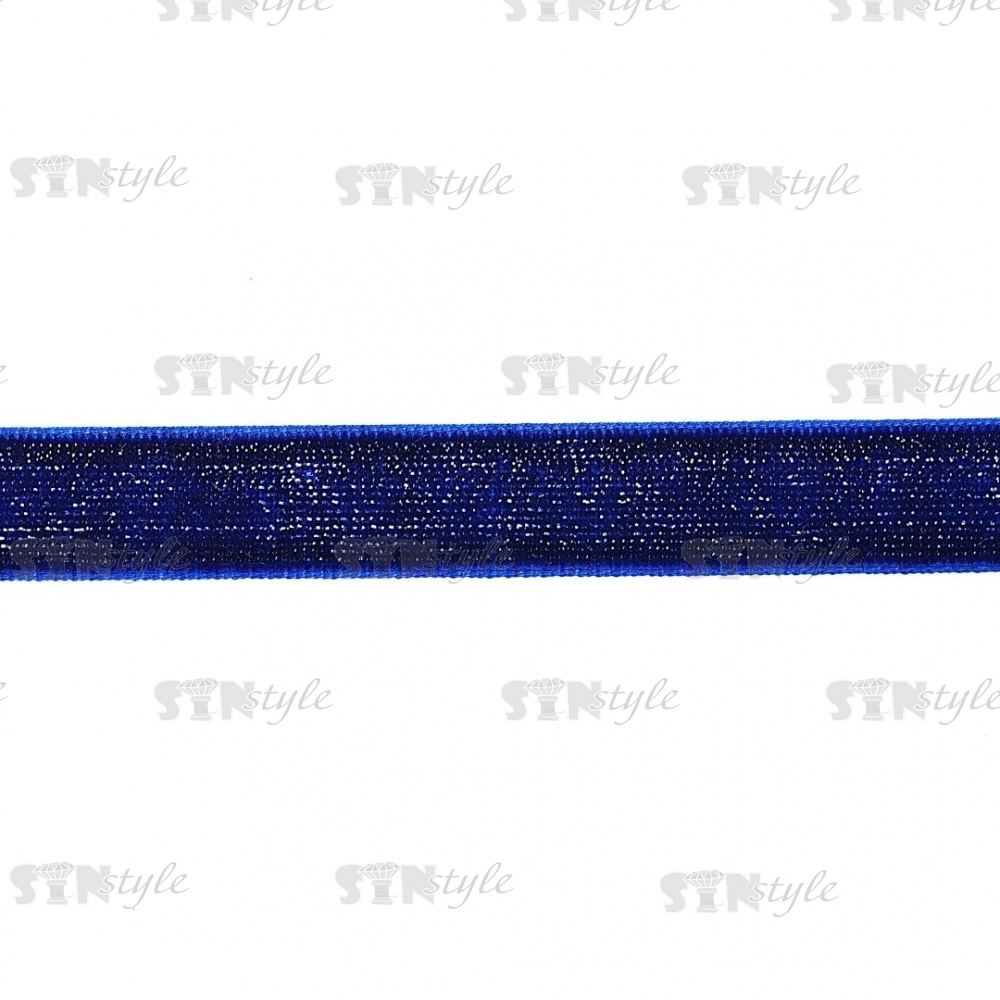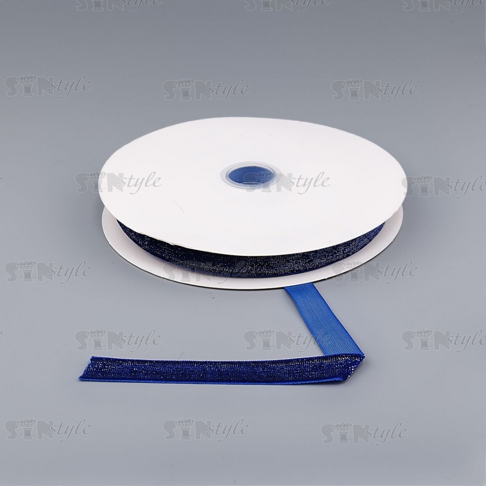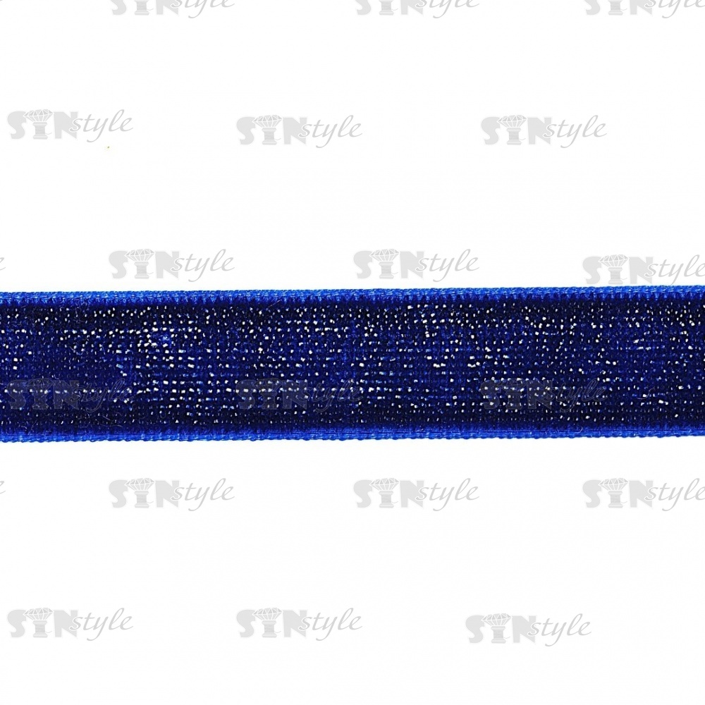 Лента бархатная с люрексом, ширина 15 мм, цвет 175 (синий), намотка 20 ярдов