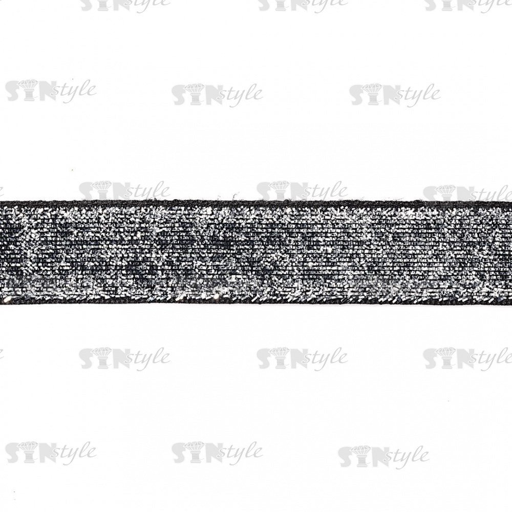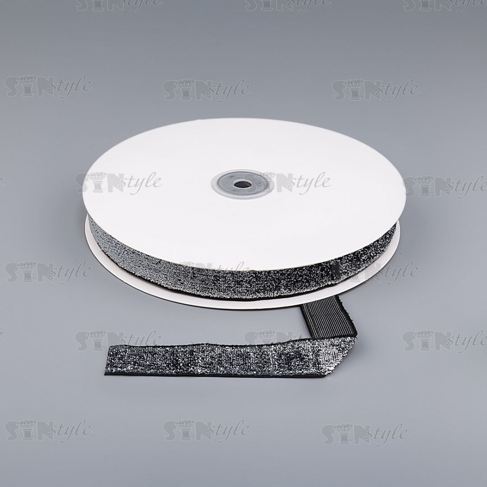 Лента бархатная с люрексом, ширина 20 мм, цвет черный+серебряный, намотка 50 ярдов