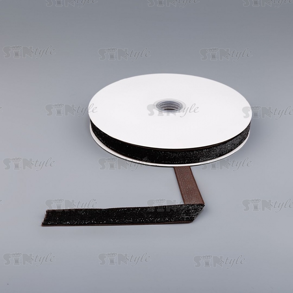 Лента бархатная с люрексом, ширина 15 мм, цвет 120 (шоколадный), намотка 20 ярдов