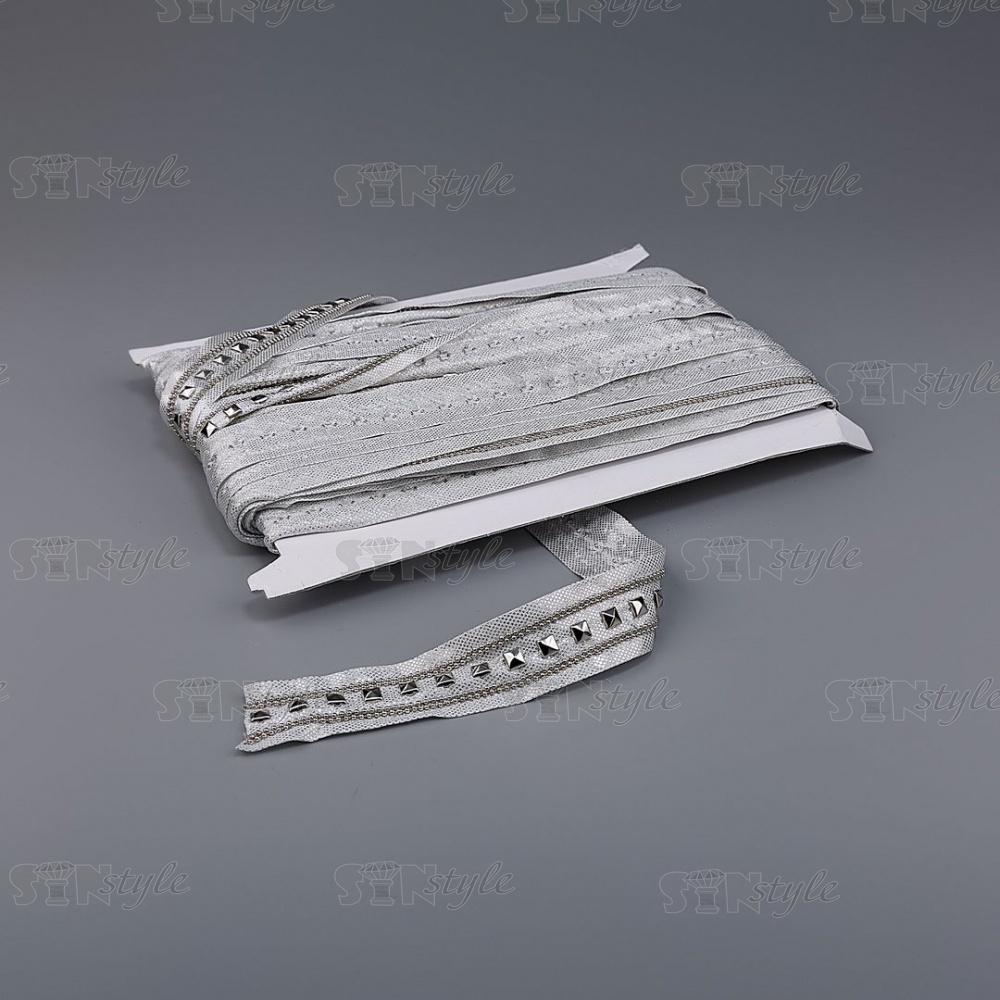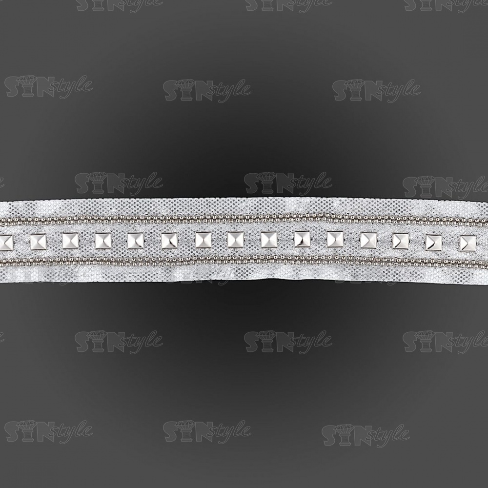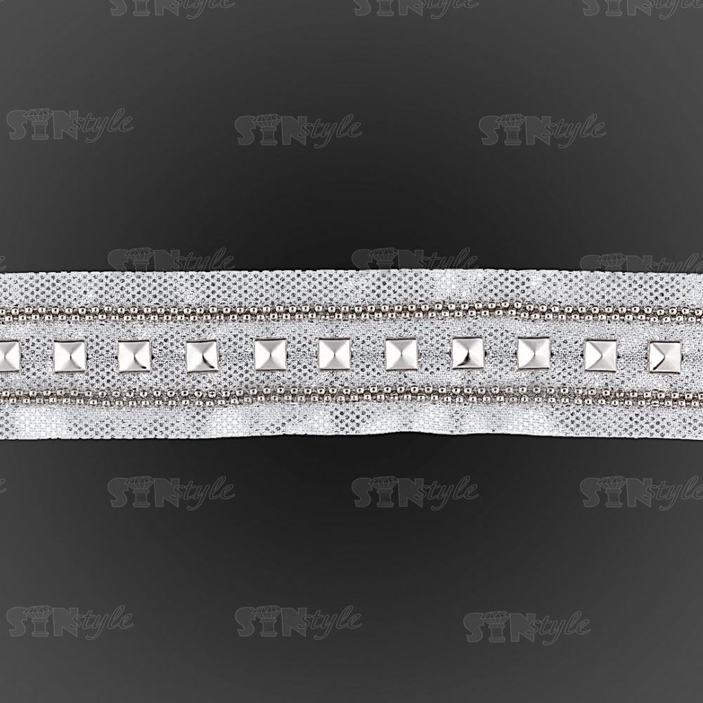 Тесьма отделочная с заклепками, ширина 25 мм, цвет серебряный, намотка 15 ярдов