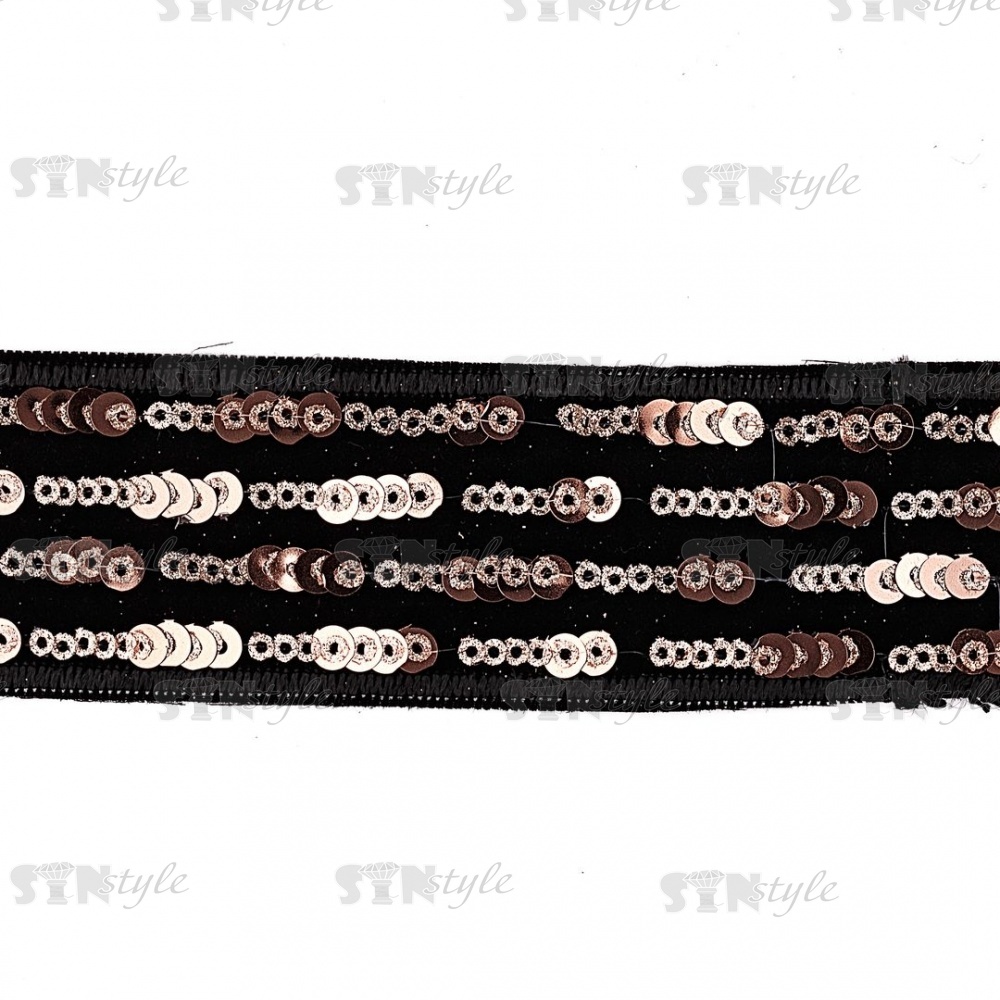 Декоративная бархатная тесьма, расшитая пайетками цвета шампань, ширина 35 мм, намотка 10 ярдов