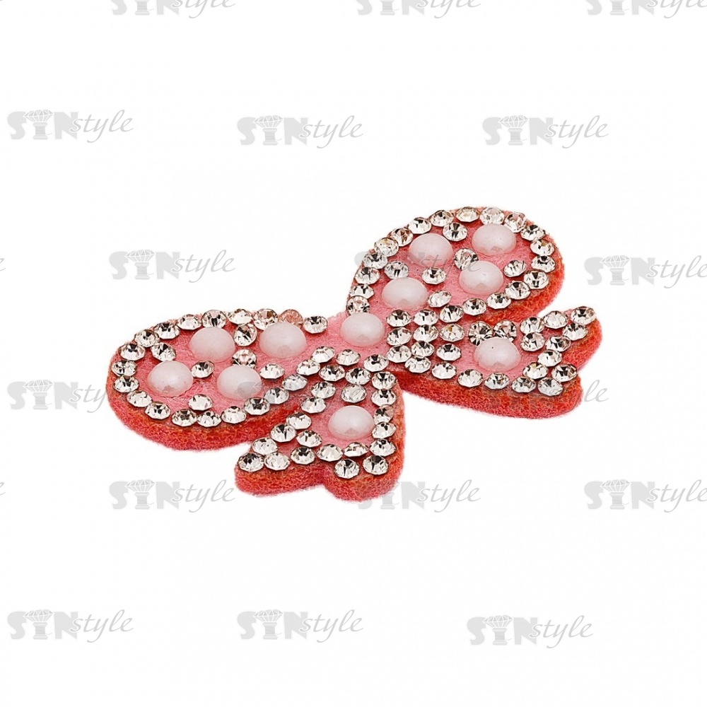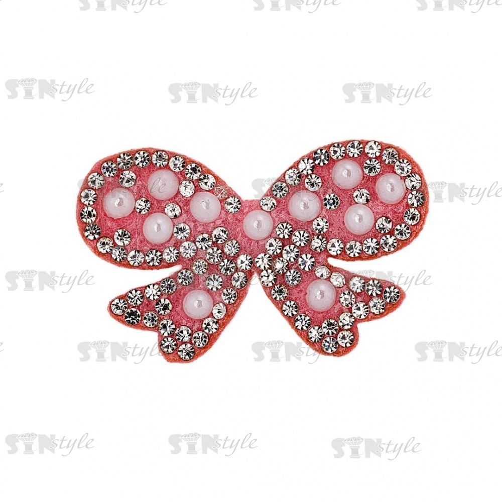 Аппликация "Бантик" из страз на фетровой основе, размер 40 мм х 25 мм, цвет розовый + белые стразы и бусины