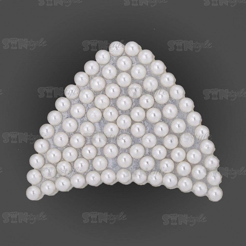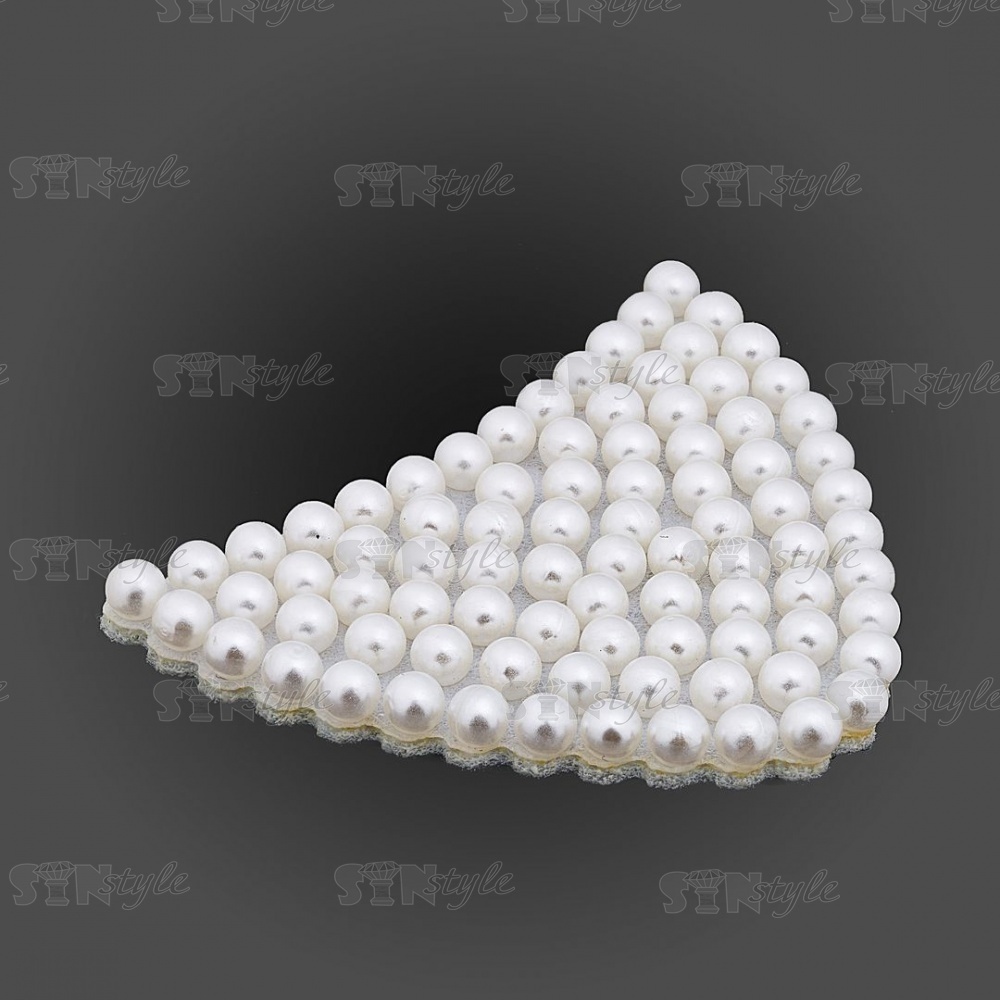 Аппликация "Ушки" из страз, на фетровой основе, размер 52 мм х 42 мм, цвет белый + белые бусины