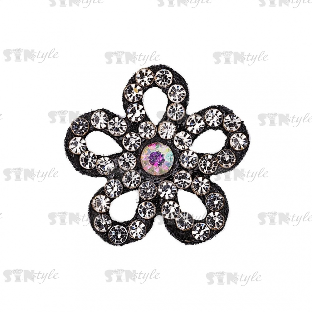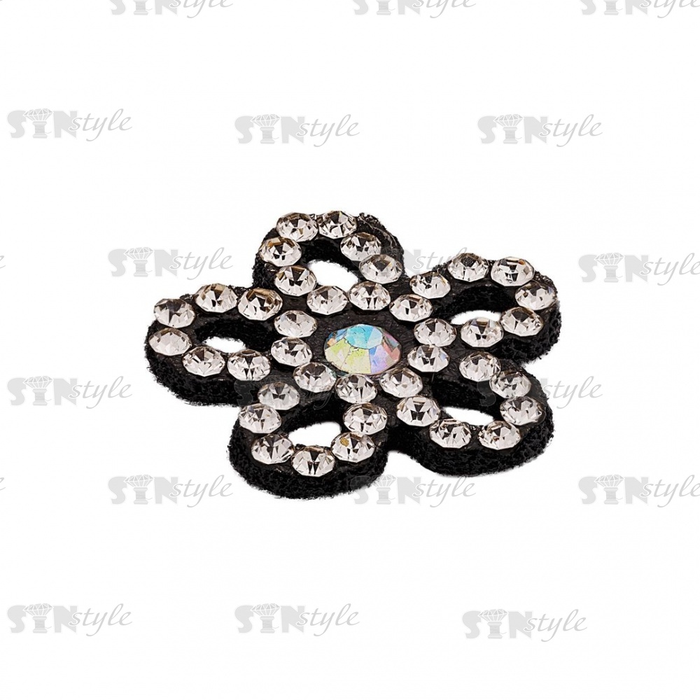 Аппликация "Цветочек" из страз, на фетровой основе, размер 20 мм, цвет черный + белые и радужные стразы