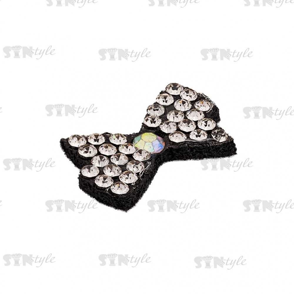Аппликация "Бантик" из страз, на фетровой основе, размер 20 мм х 13 мм, цвет черный, стразы белые и радужные