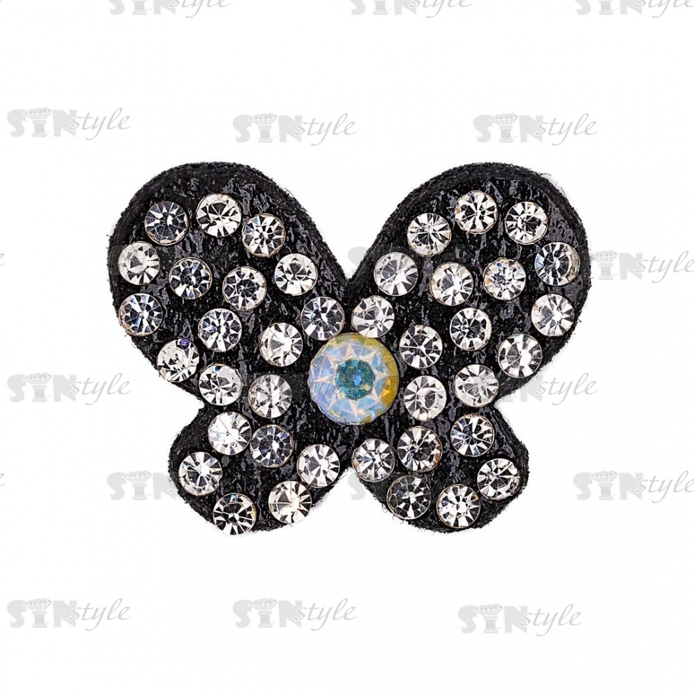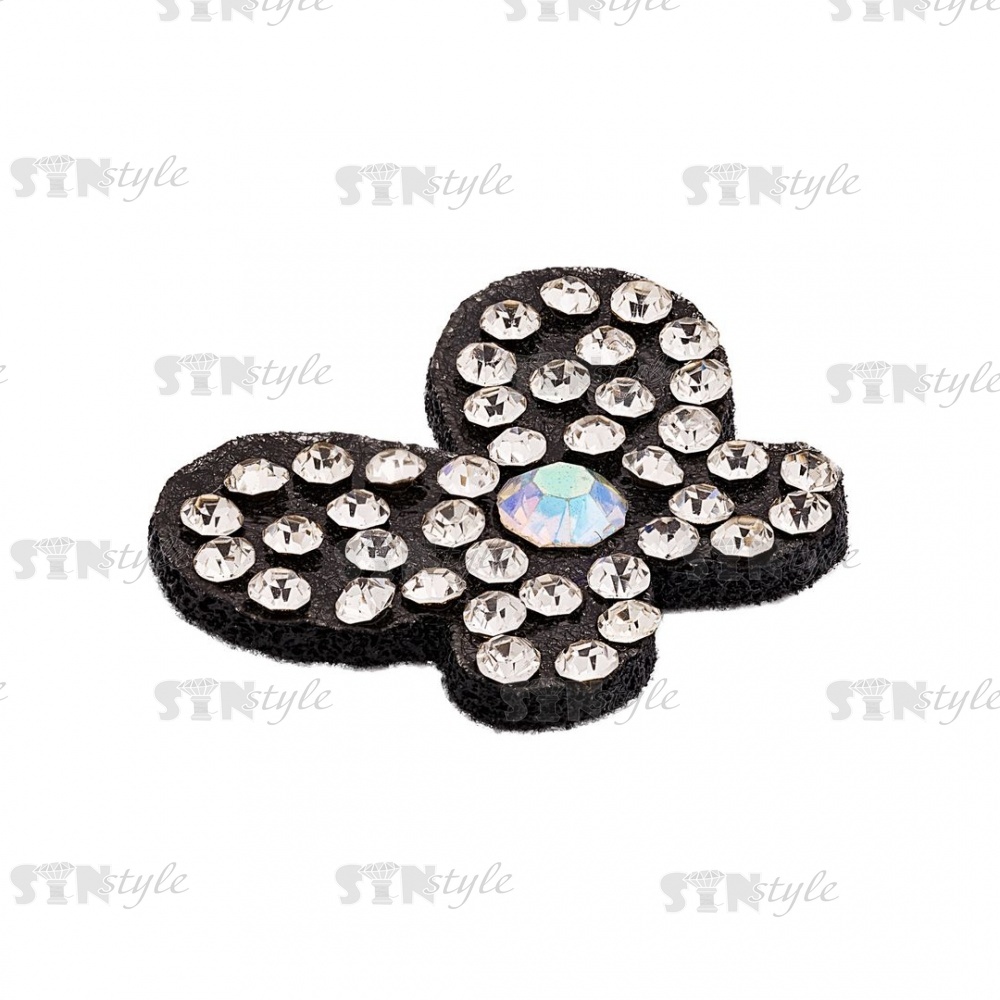 Аппликация "Бабочка" из страз, на фетровой основе, размер 20 мм х 16 мм, цвет черный + белые и радужные стразы