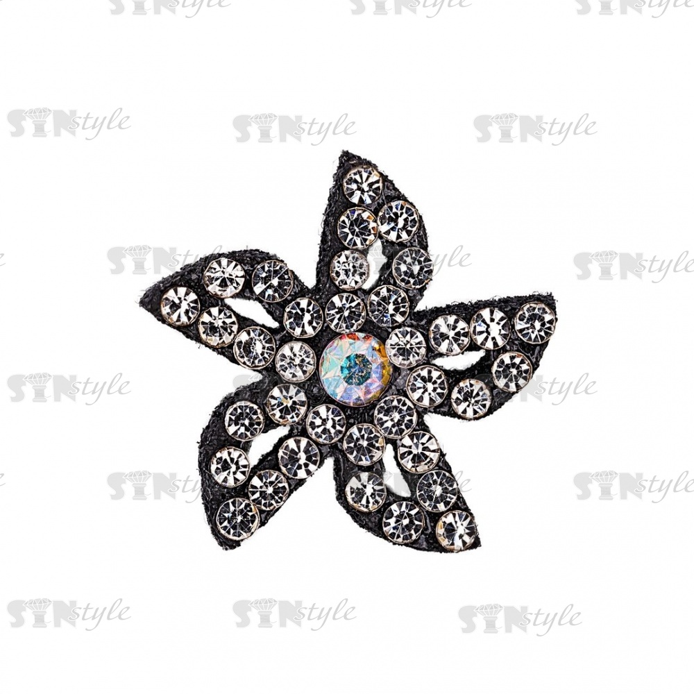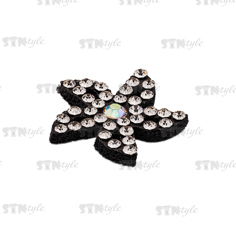 Аппликация "Цветочек" из страз, на фетровой основе, размер 20 мм, цвет черный + белые и радужные стразы
