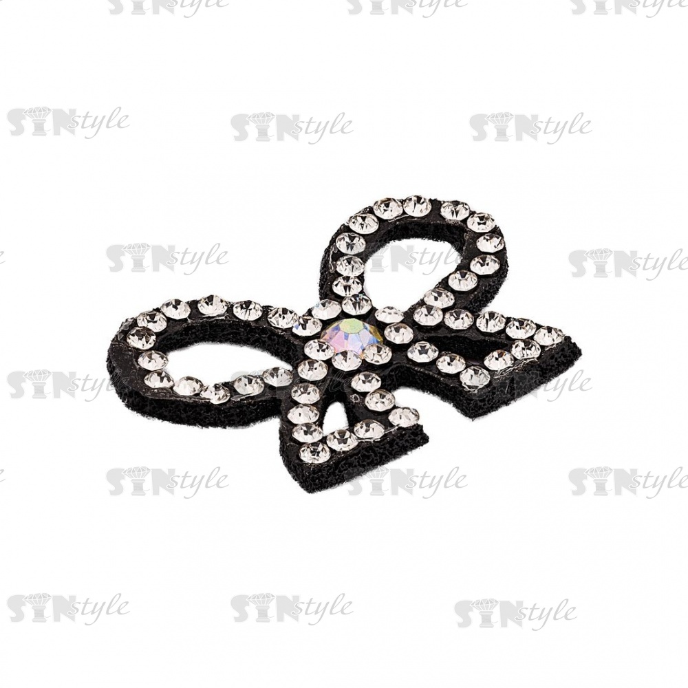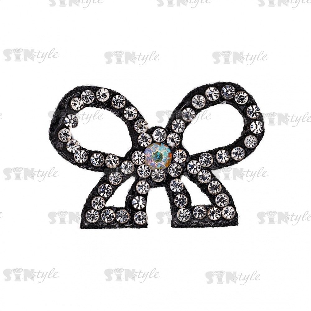 Аппликация "Бантик" из страз, на фетровой основе, размер 34 мм х 23 мм, цвет черный + белые и радужные стразы